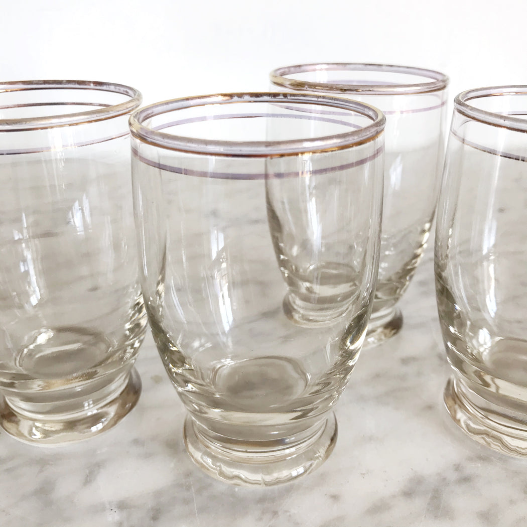 Set of 4 Vintage Juice Glasses with Gold Rims