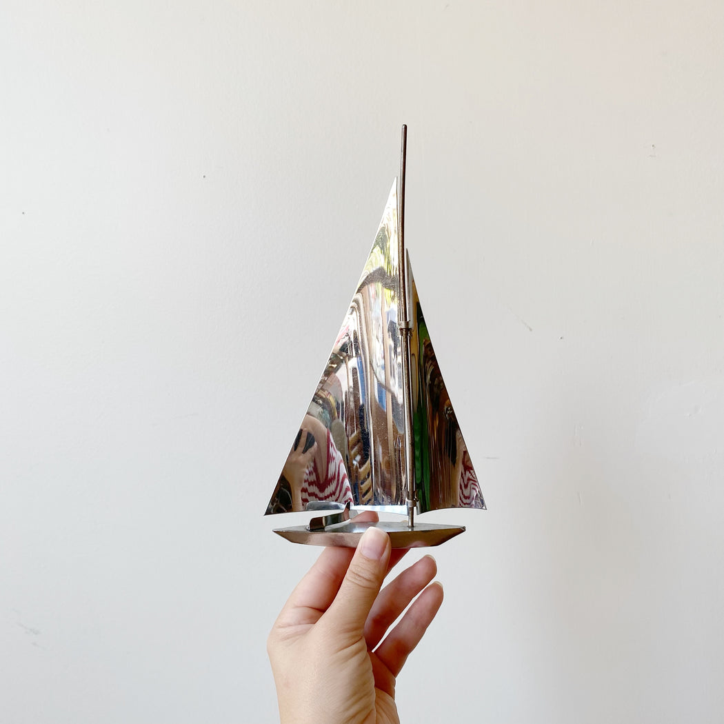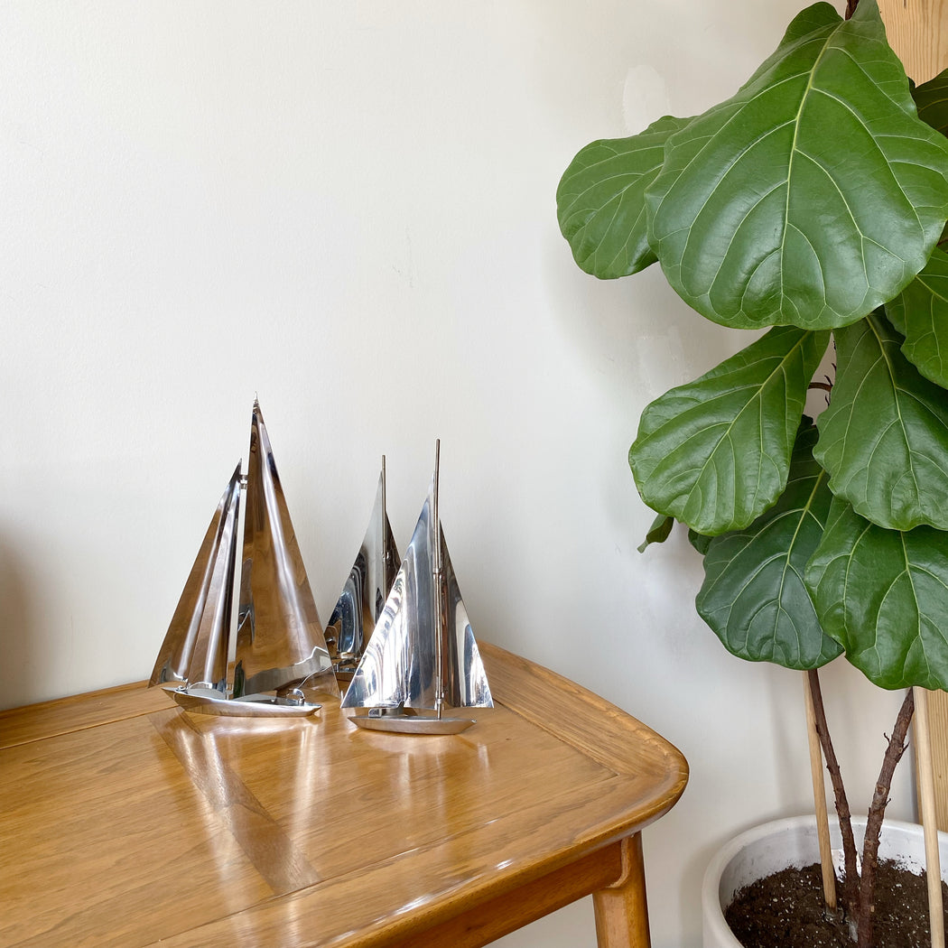 Trio of vintage polished steel sailboats! They’re perfect for lining up along a windowsill or bookshelf! They would make a lovely gift for someone who enjoys the lake, sea, or life by the water!