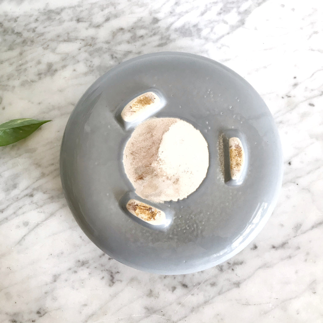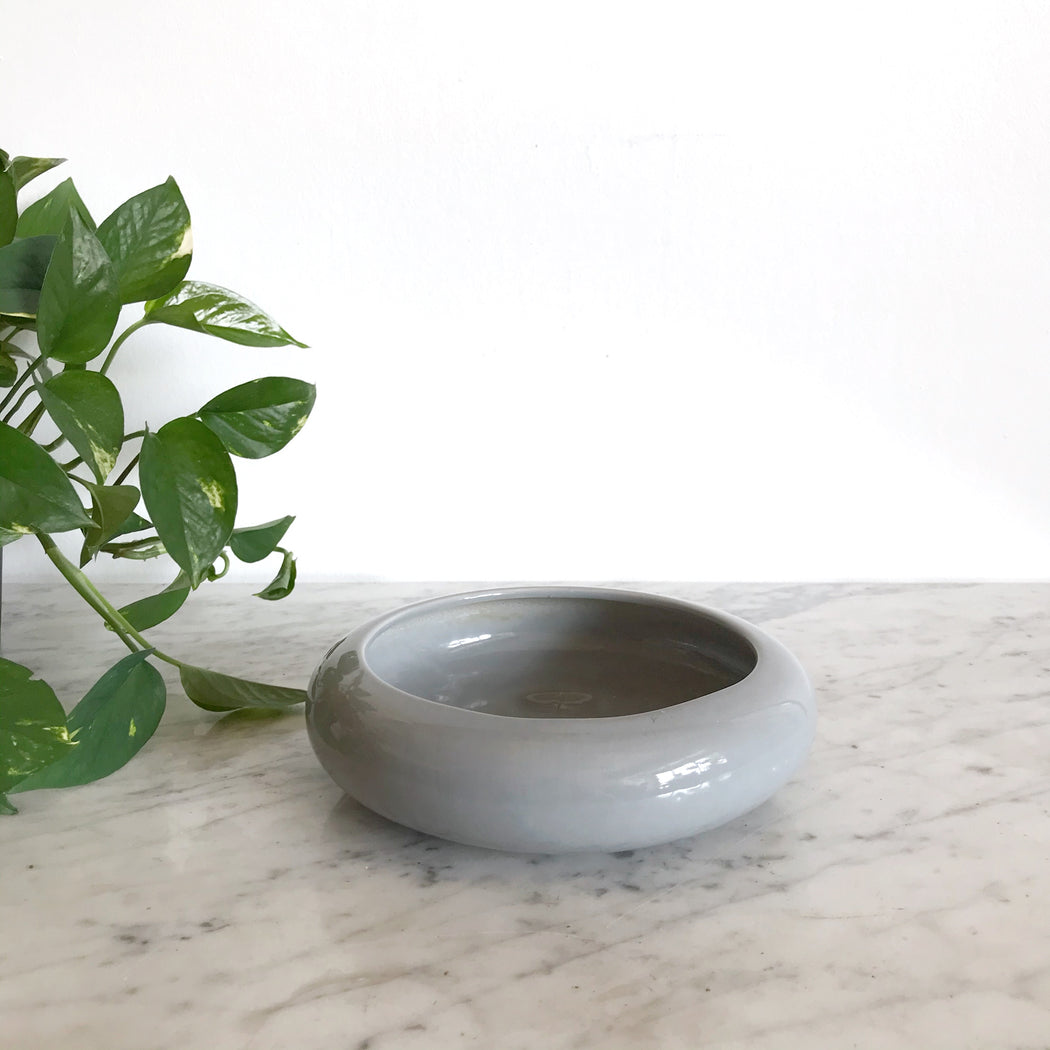 Beautiful shallow vintage ceramic planter for your tiny succulent or cactus collection! We love the minimalist shape and dusty blue glazing.