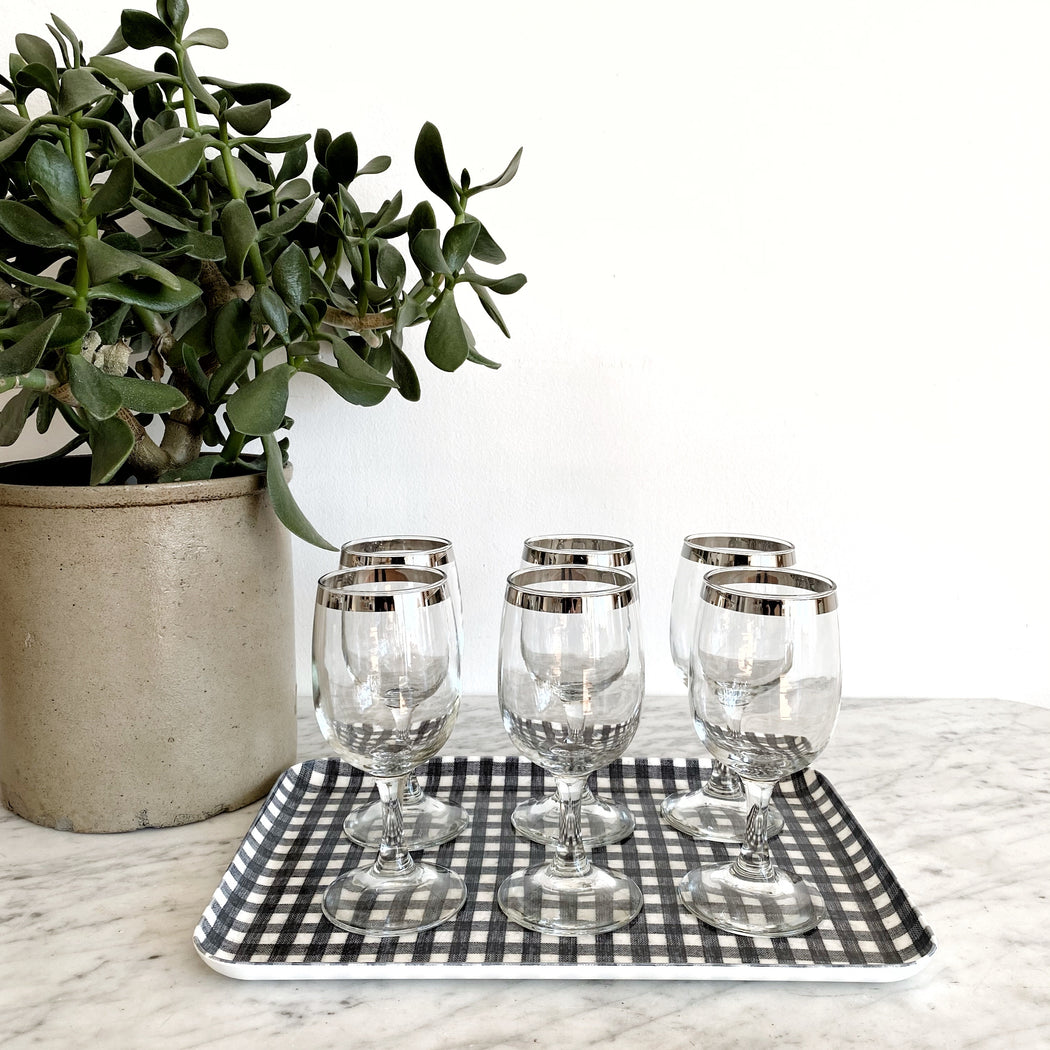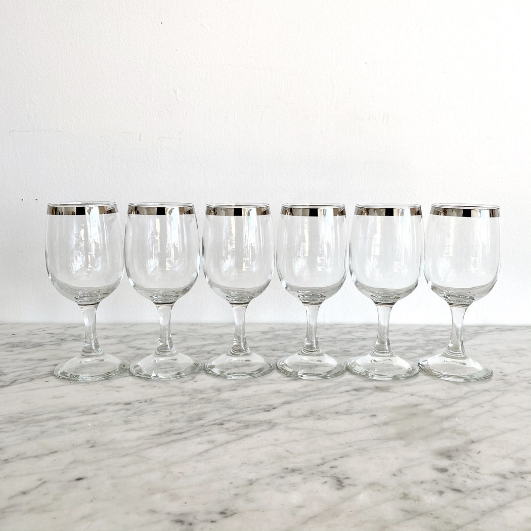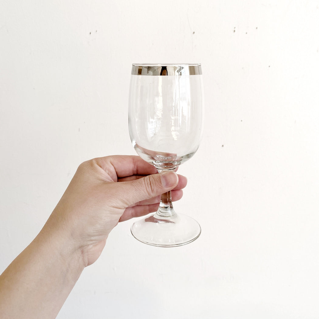 Dress up your table with a touch of silver accented glassware. This classic vintage silver-rimmed stemware is sure to make your setting extra special.