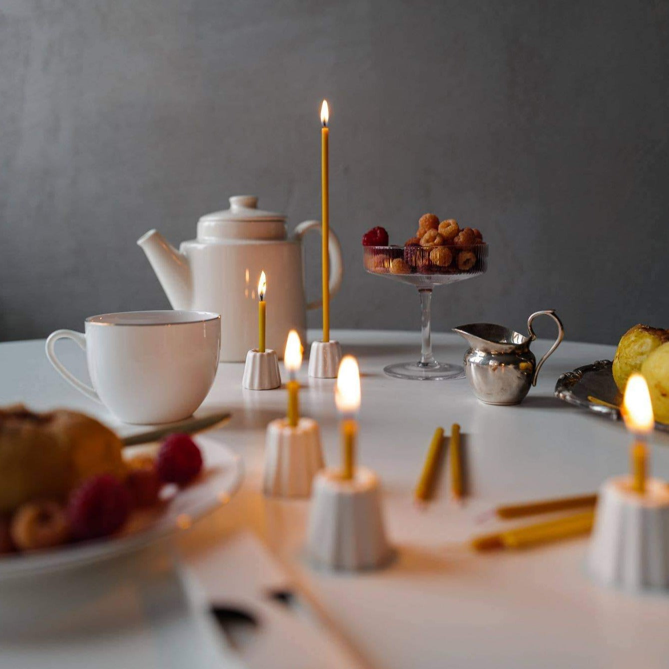 These candles are handmade in Lithuania from local farmers' beeswax, they are natural and non-toxic, no artificial color or scent is added. As a natural material beeswax may vary in color from bright yellow to darker tones of brown. Candles may change their color slightly with time or when kept in direct sunlight.