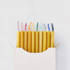 Thin and fine candles from pure beeswax with multicolored cotton wicks.