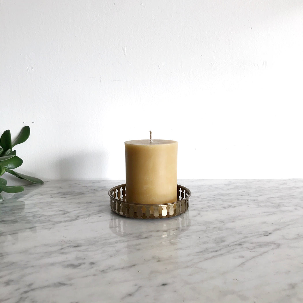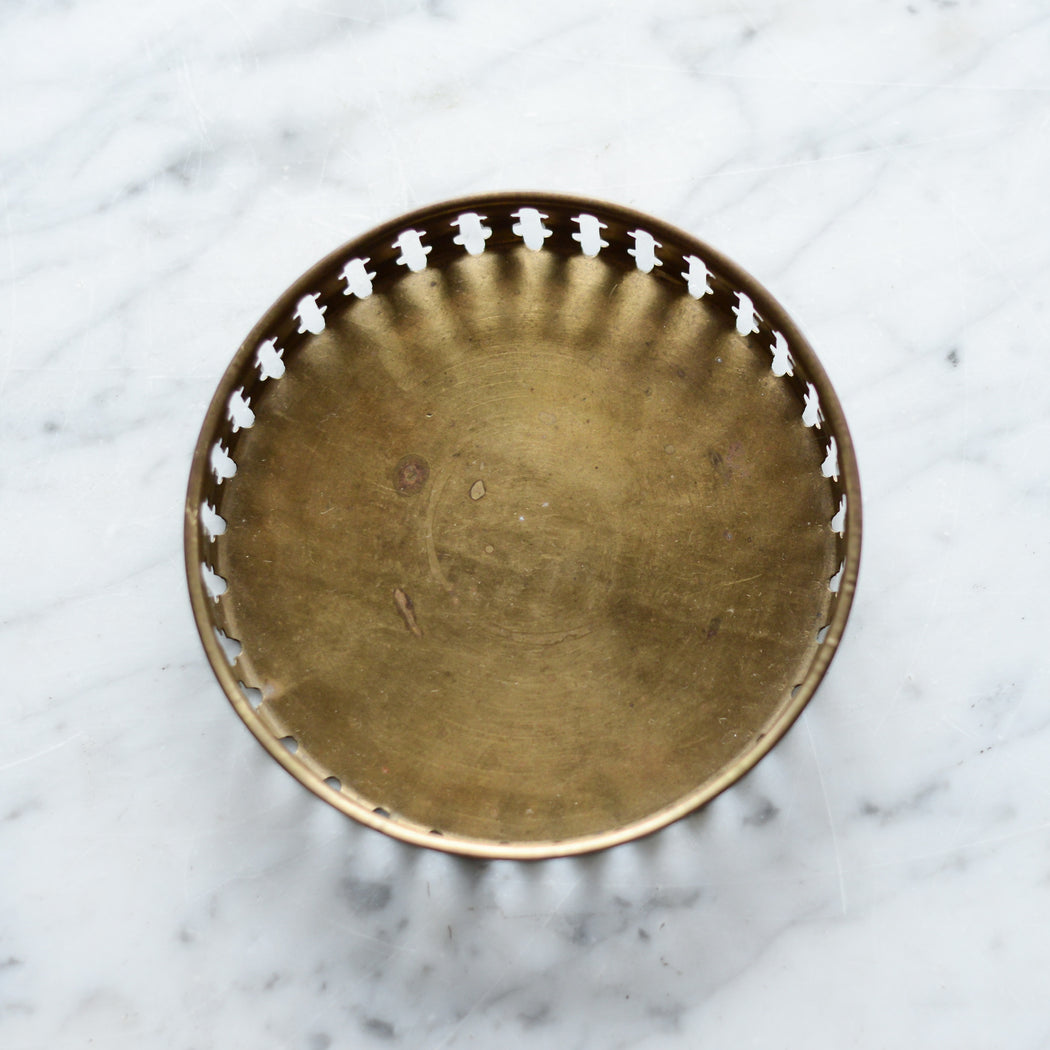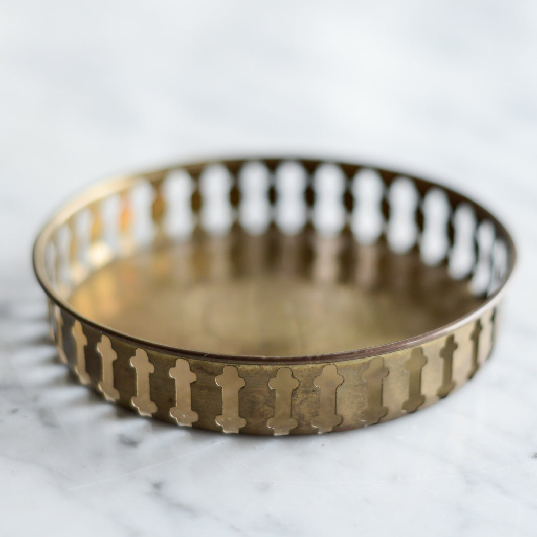 A pretty small vintage brass tray with decorative cutout rim.