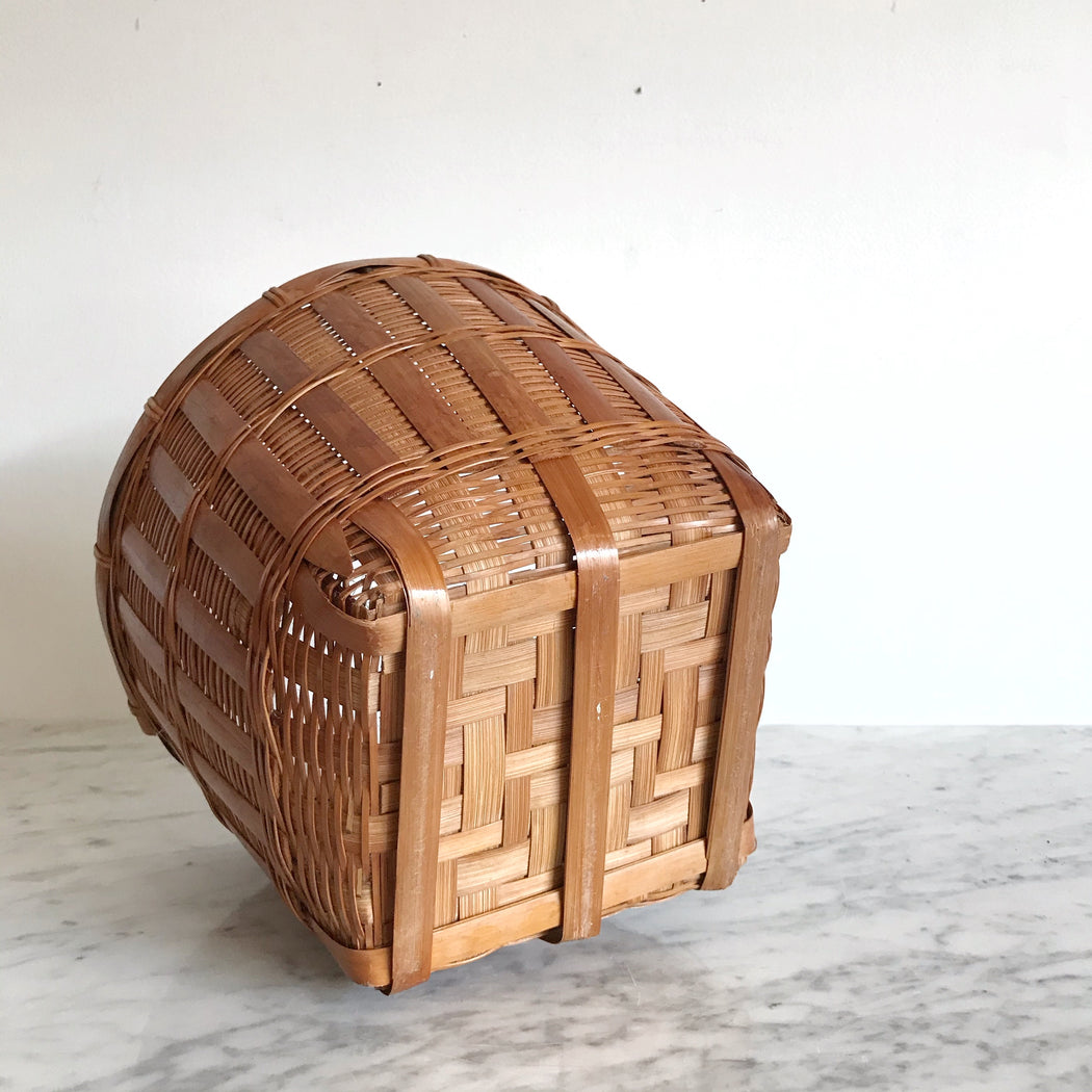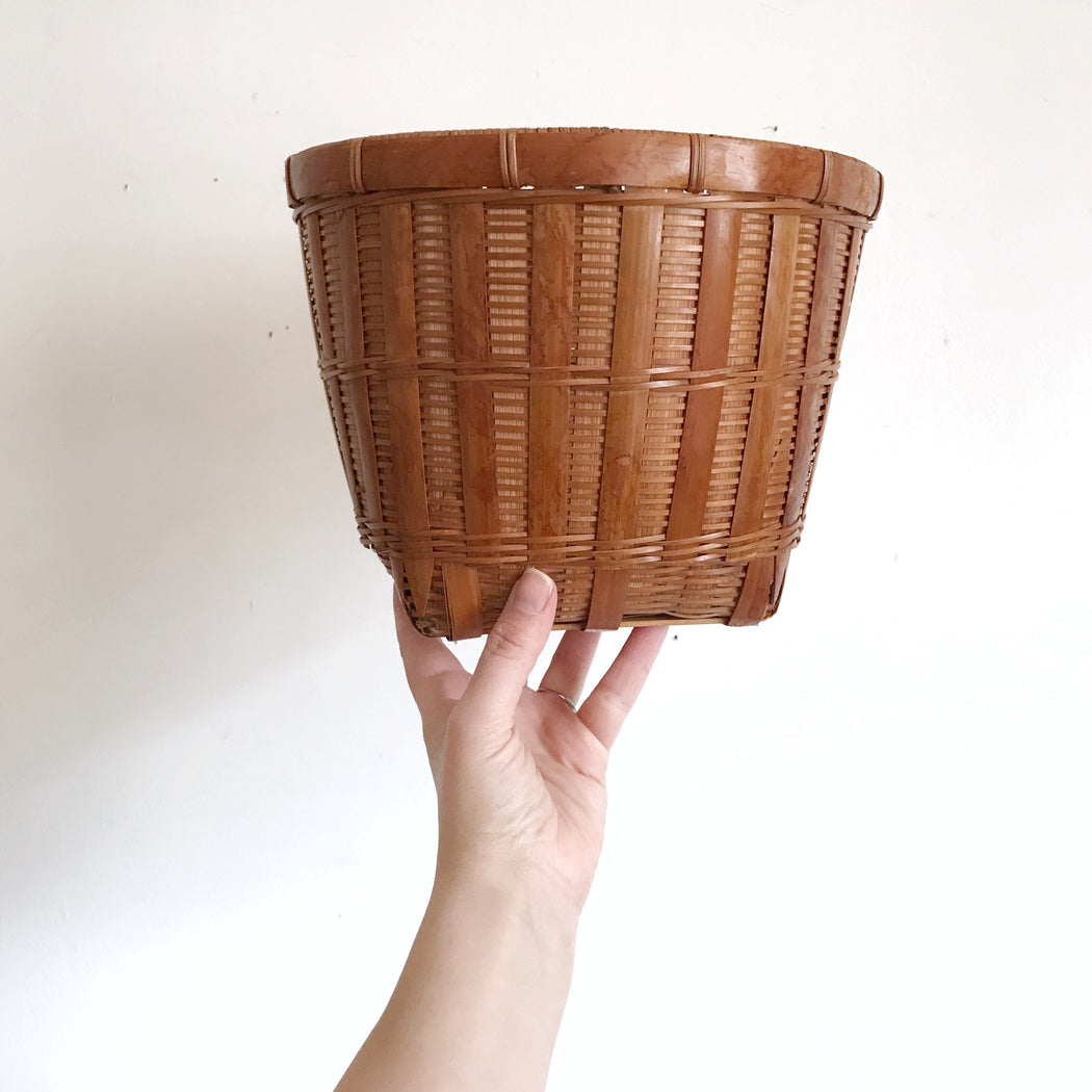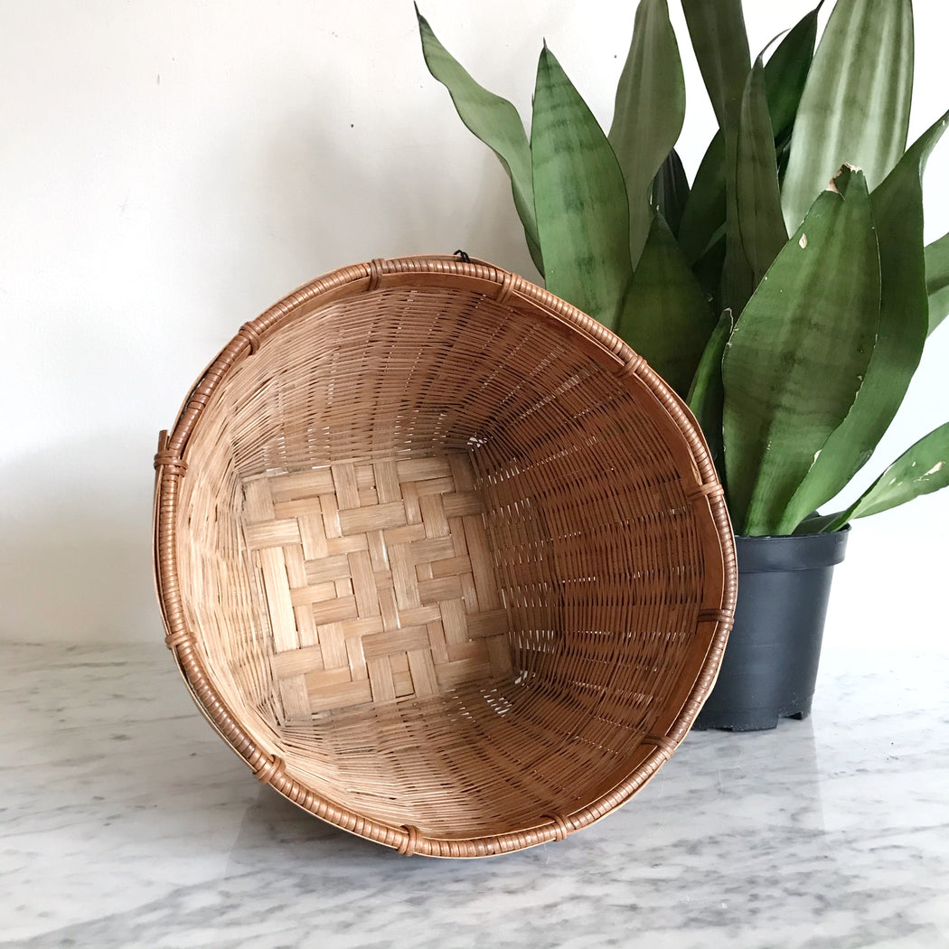 A beautiful vintage woven basket with bamboo framing. We love this one used as a plant holder, as well as for organizing and corralling things around the home.