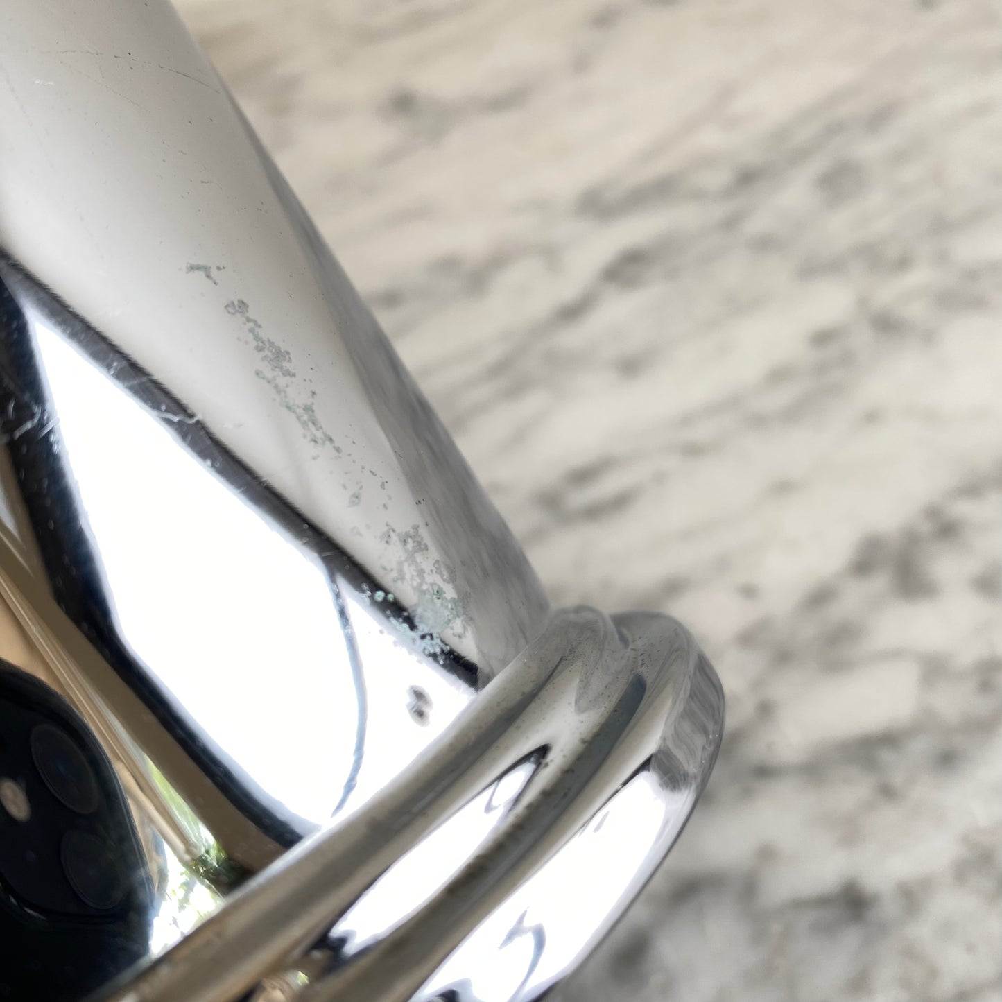 Condition: This is a found vintage piece with normal wear consistent with age. There are some light scratches, a dent on the bottom rim, and very light sign of tarnish (please see closeup photos).