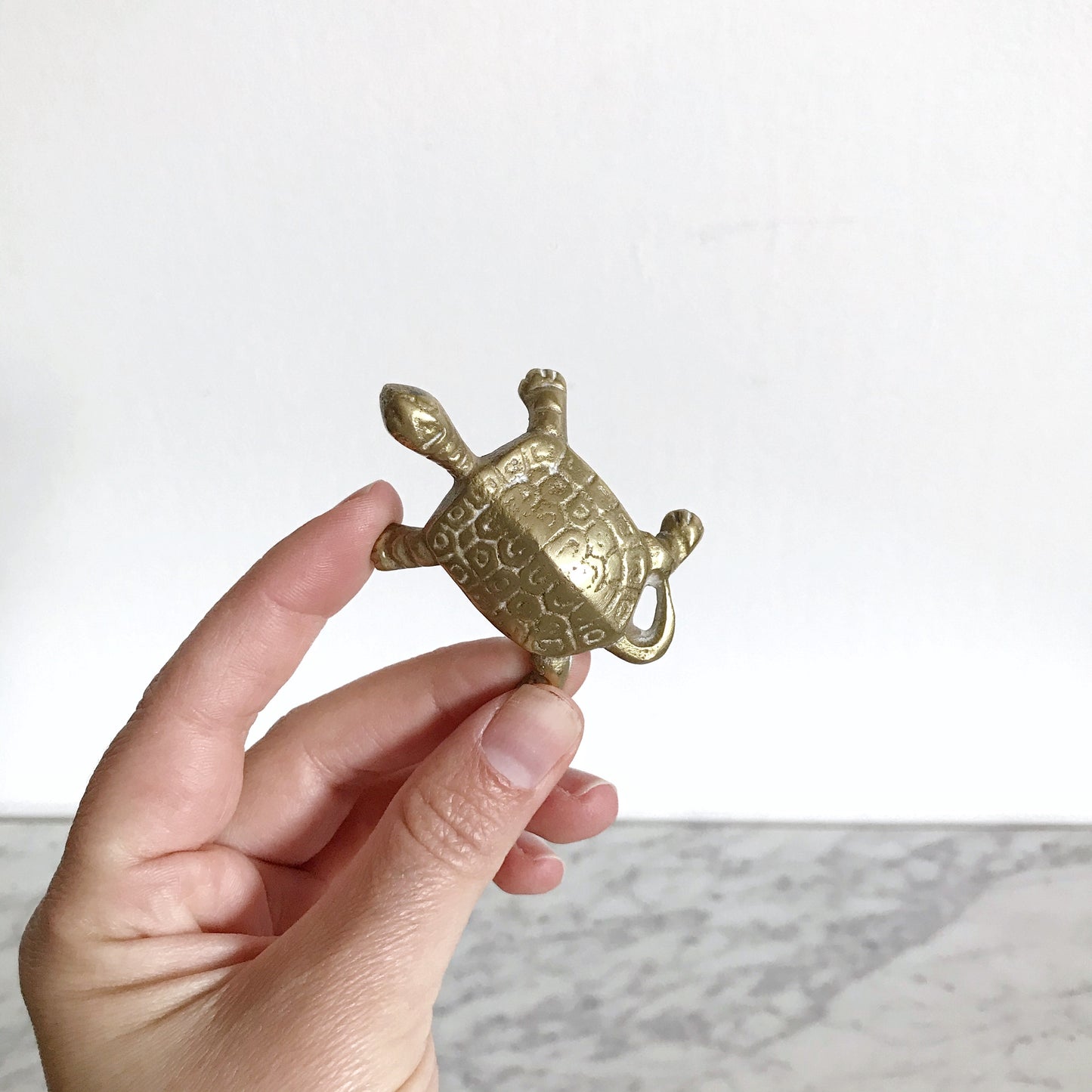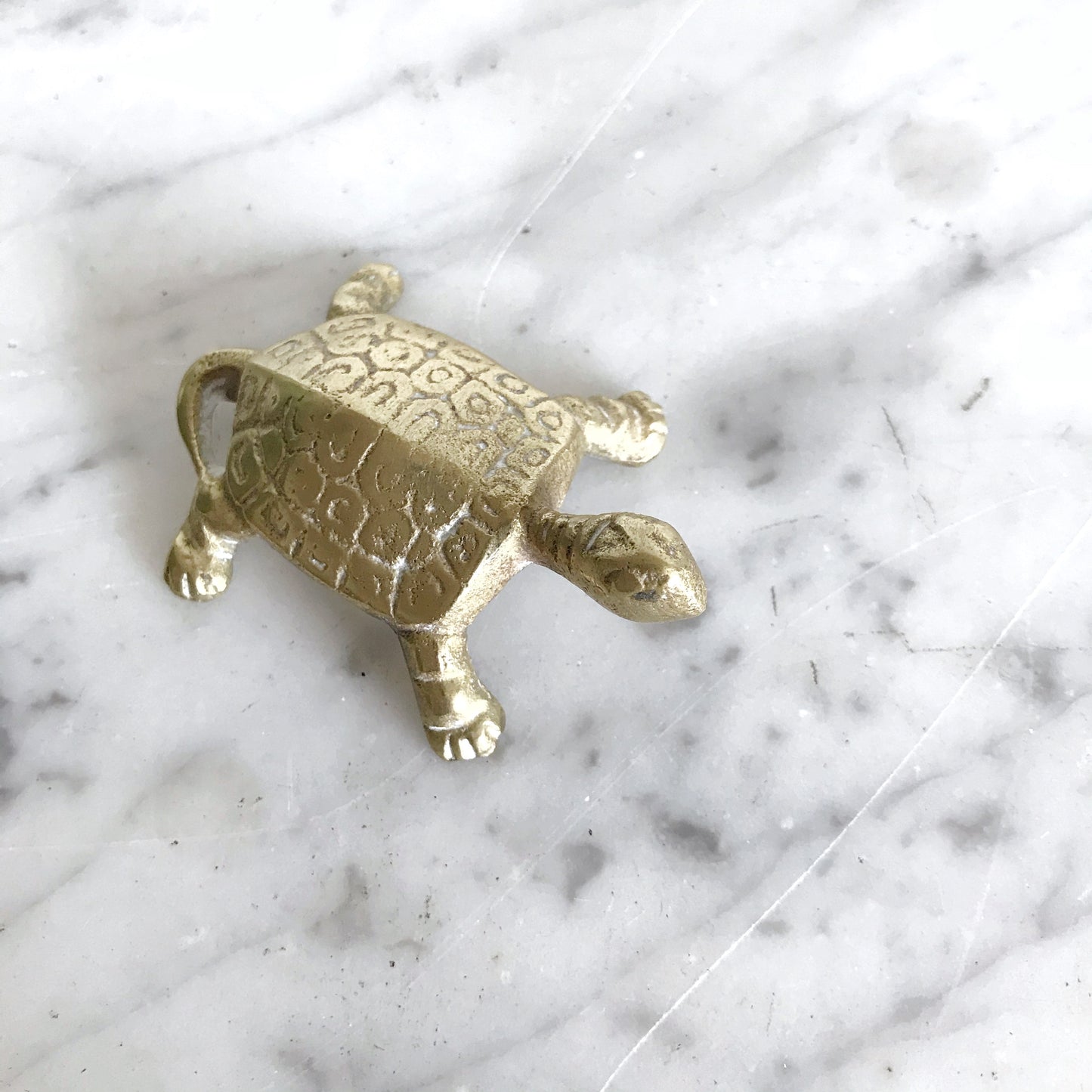 The cutest little baby brass turtle! How cute would he be tucked in with a favorite houseplant?!