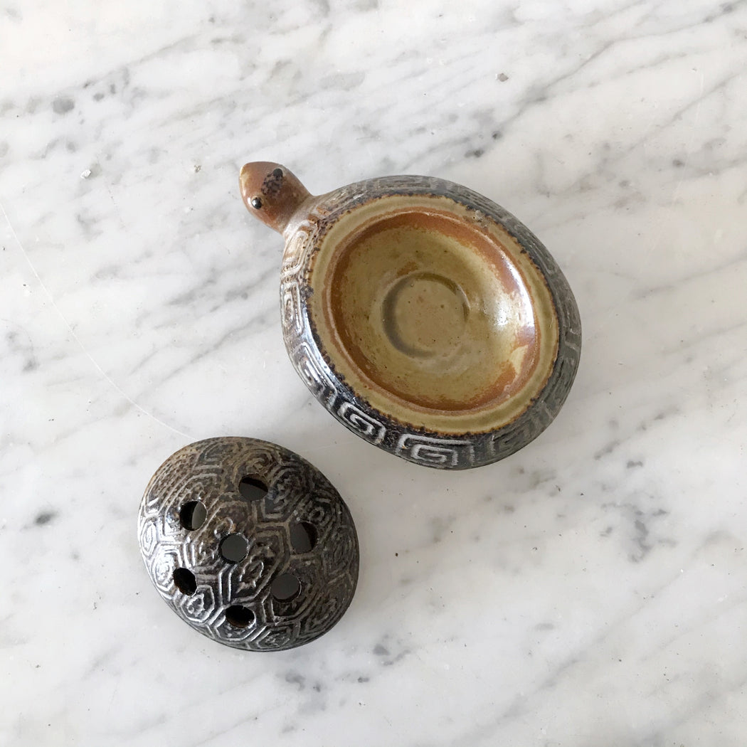 We love this vintage ceramic turtle incense burner! The detailed designs and glazing are lovely, and it looks cool while diffusing your favorite cone incense (or simply placed among the houseplants when not in use!)...