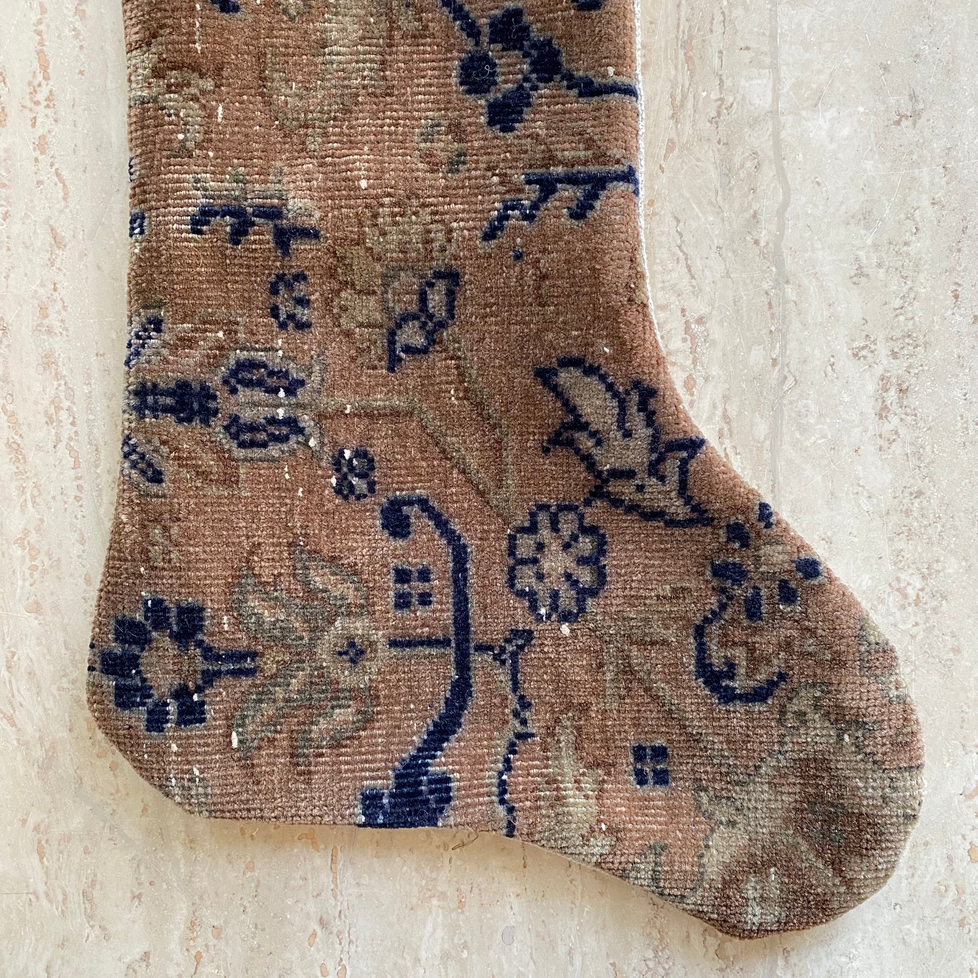 Heirloom quality holiday stocking to be enjoyed for years to come! Each one is crafted by hand from vintage hand-woven Turkish rugs that are 60+ years old. The backing is a nice neutral fabric, and the interior is lightly lined. Each one is unique and special-- a treasured addition to your decor and festivities!