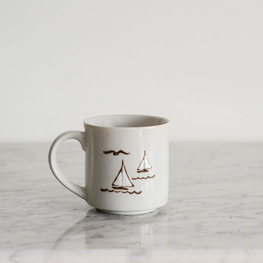 Vintage 70's Stoneware Sailboat Mug