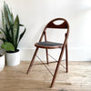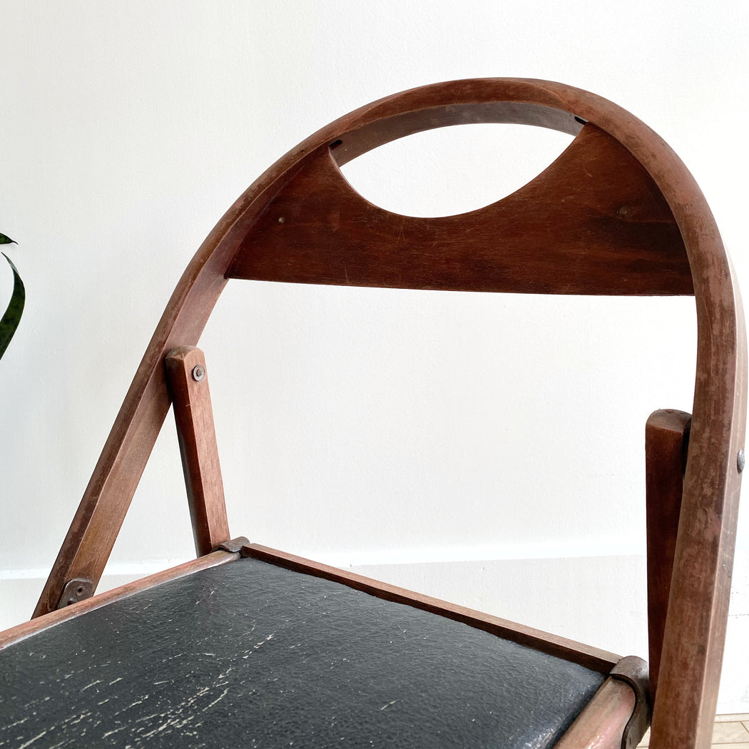 This chair has so much character, we can hardly stand it!! The incredible design with curves and lines in all the right places. Contoured top arch for easy handling, perfectly worn black seat, and worn wooden frame.