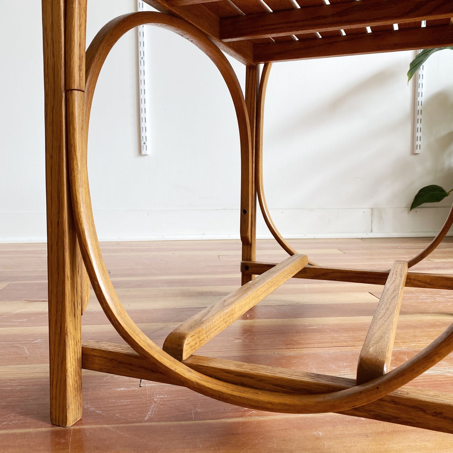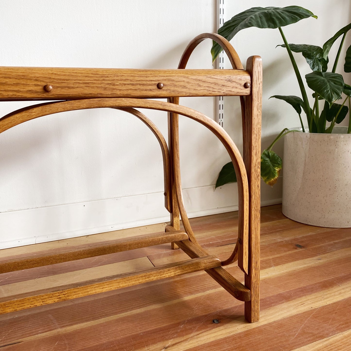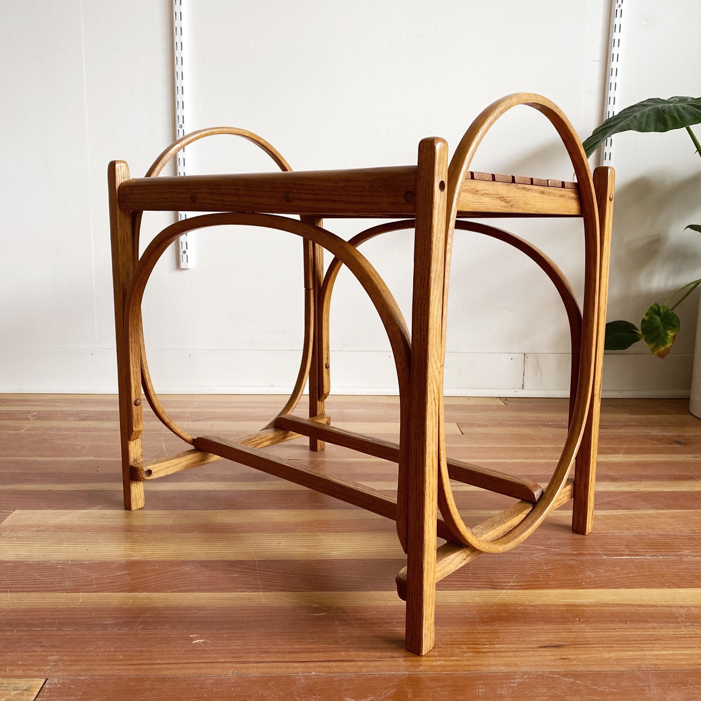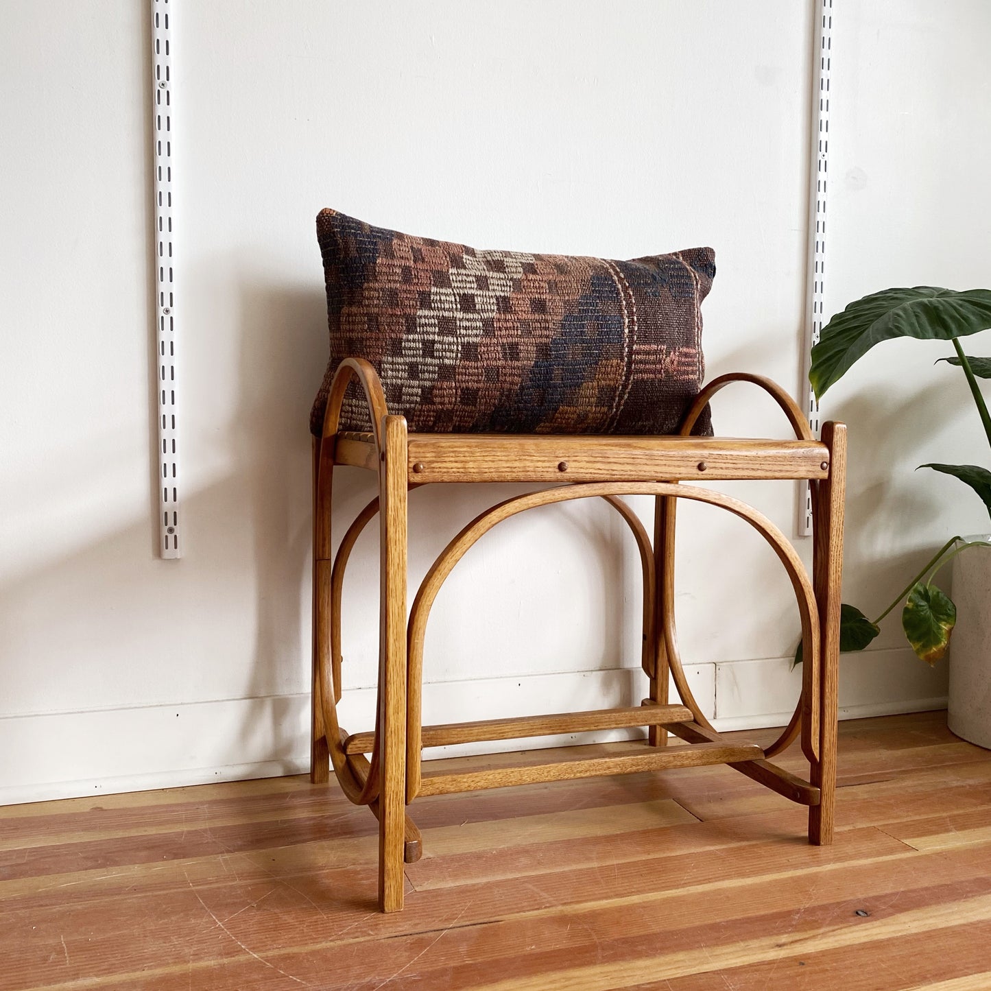 A beautiful, multi-purpose vintage wooden bench/ side table/ plant stand! We love the bentwood details and slat top! It is a super sturdy piece!