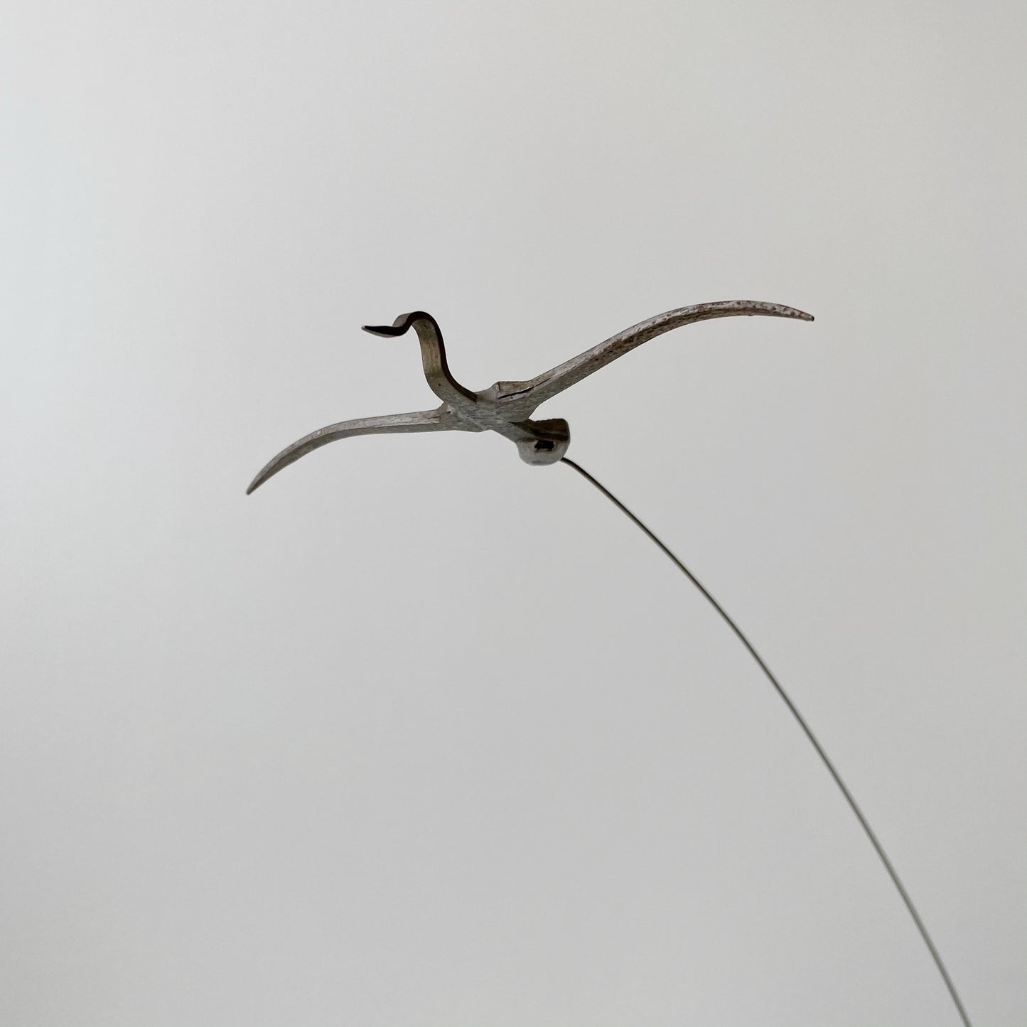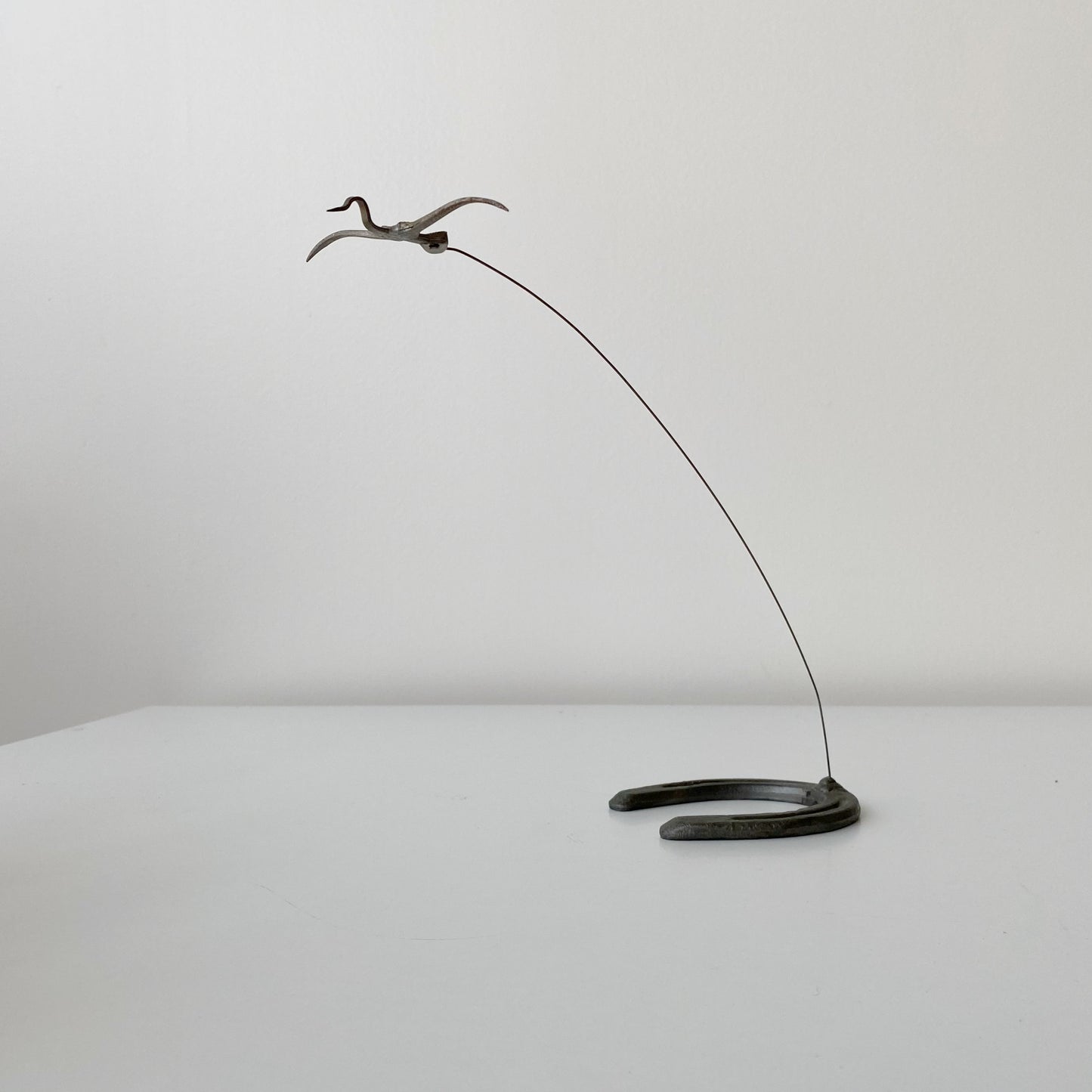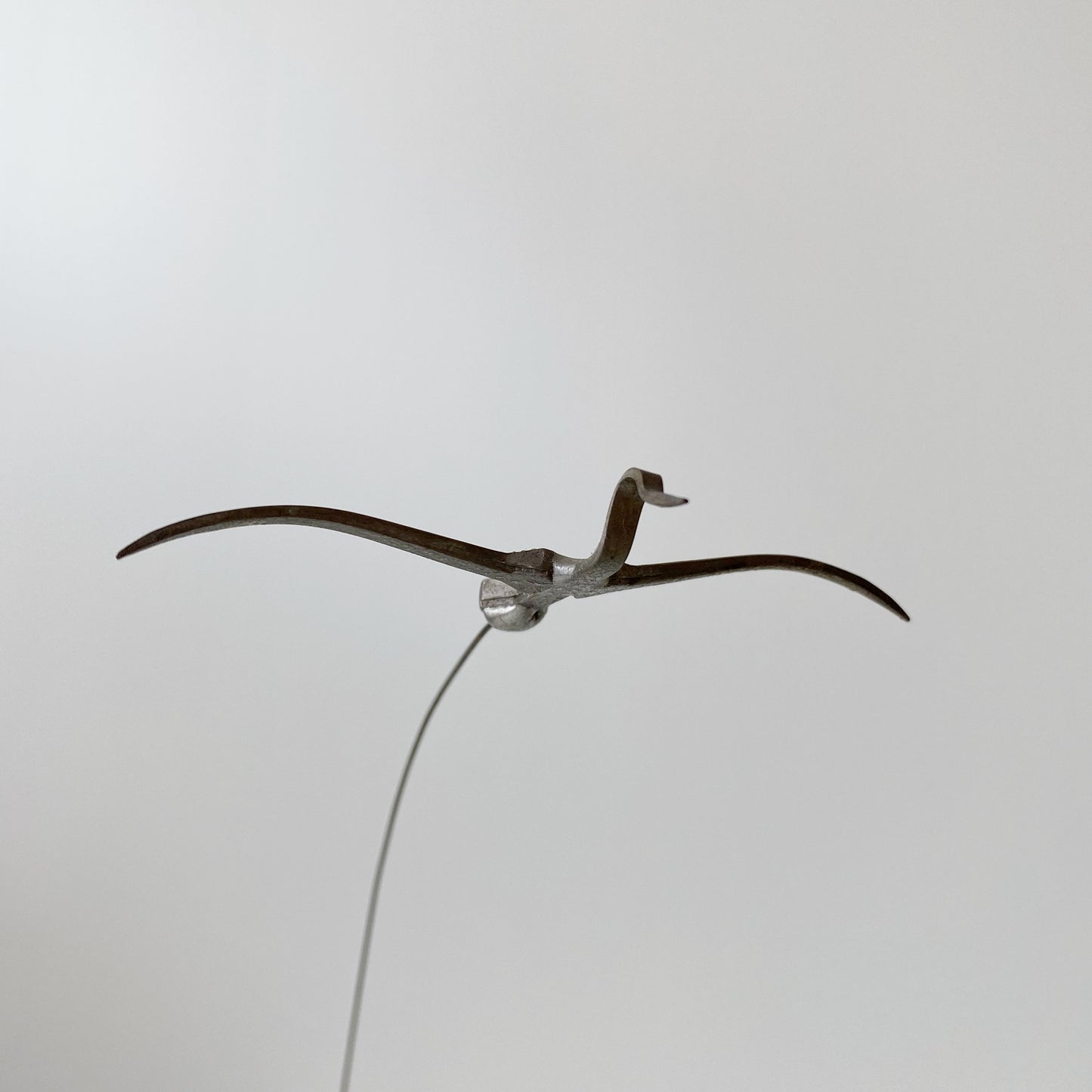 A beautiful, artist made, bird in flight wire sculpture. It’d be a great addition to any bookcase, desk, or sitting near a window to catch a breeze...