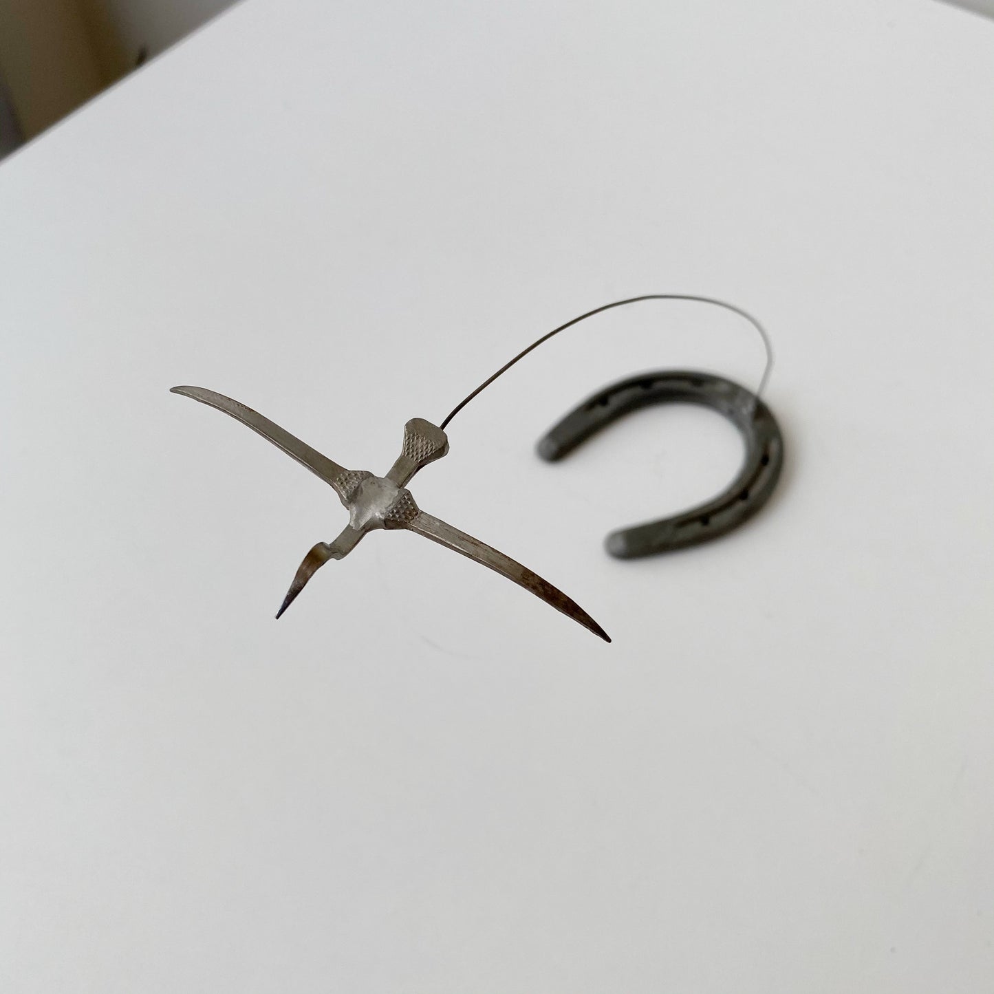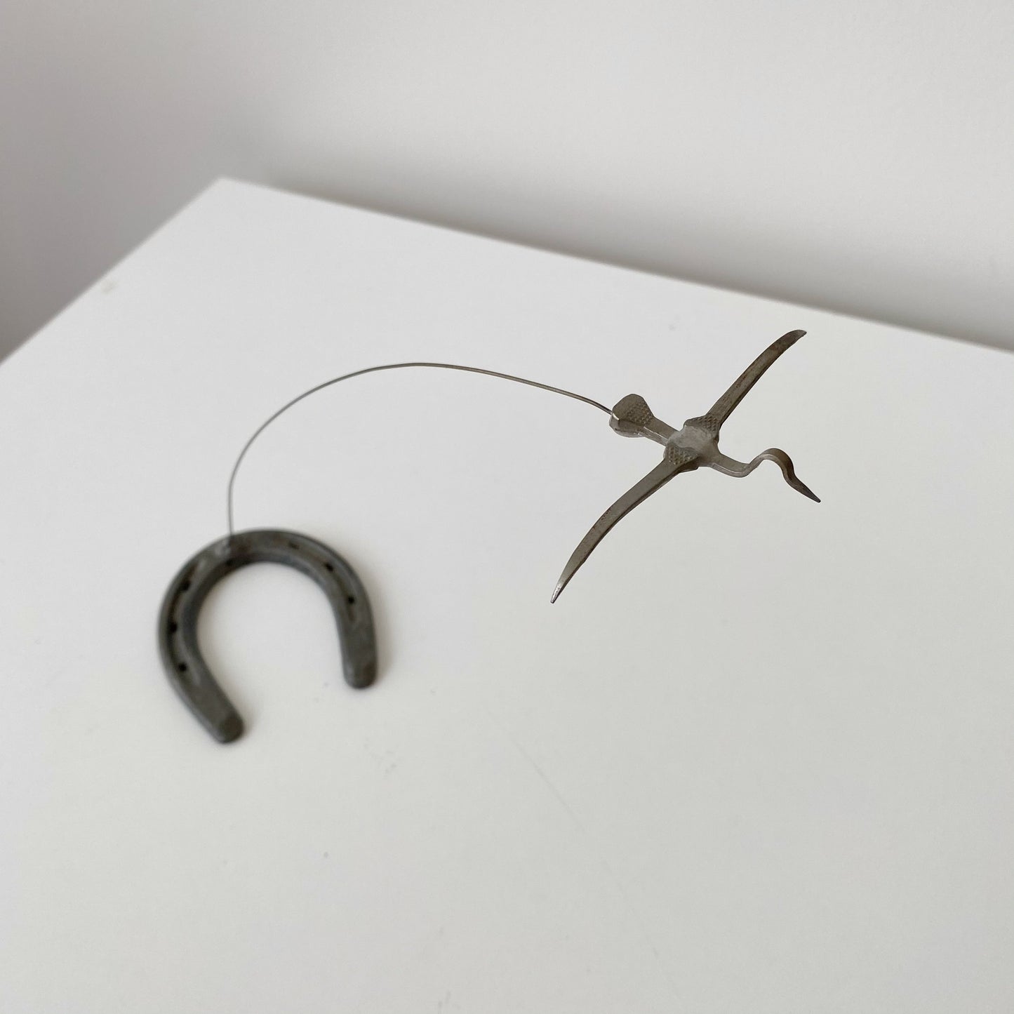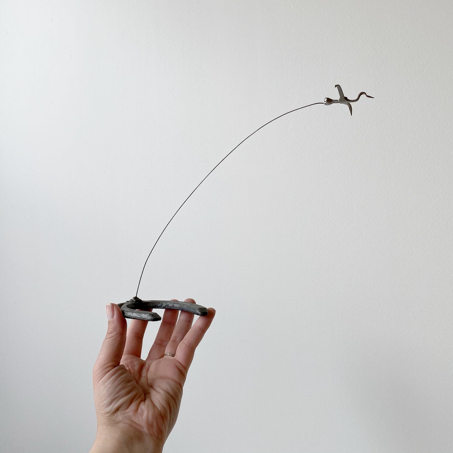 A beautiful, artist made, bird in flight wire sculpture. It’d be a great addition to any bookcase, desk, or sitting near a window to catch a breeze...