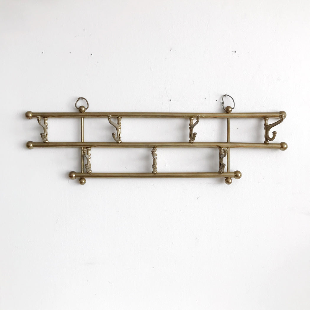 Vintage Solid Brass Coat Rack, 7 Double Hooks