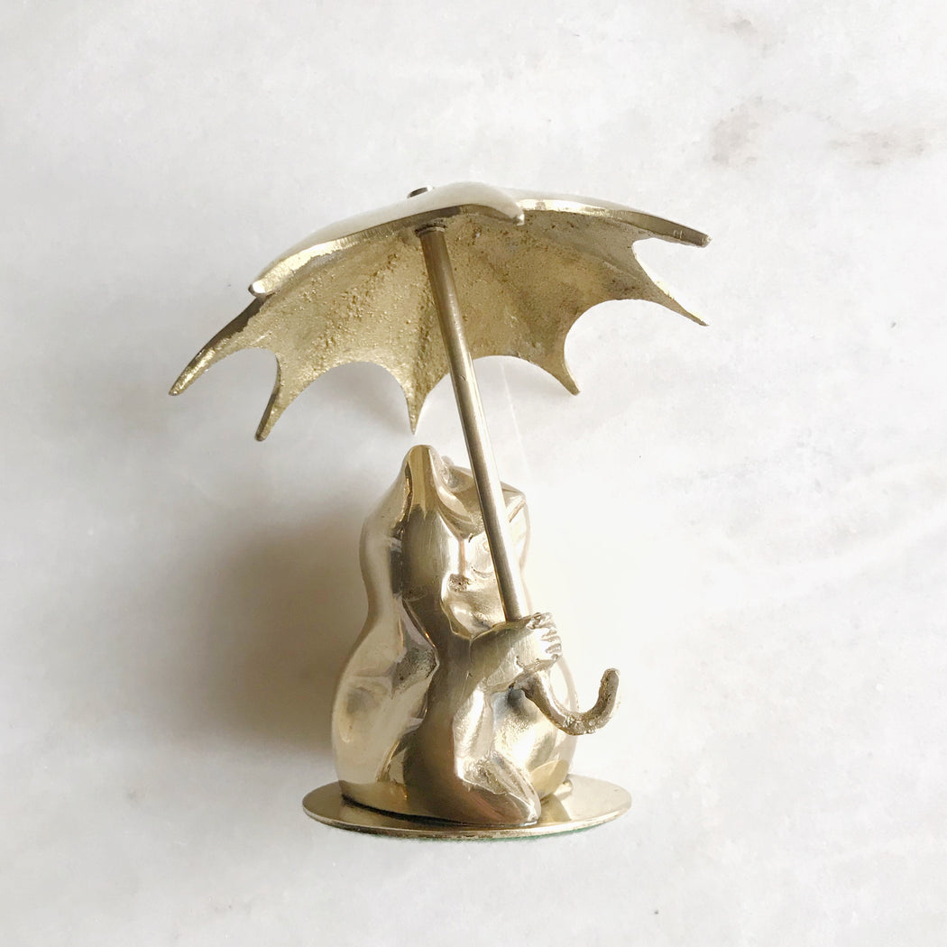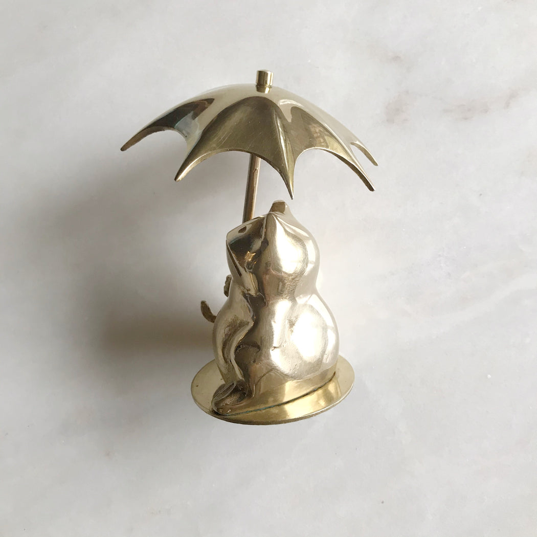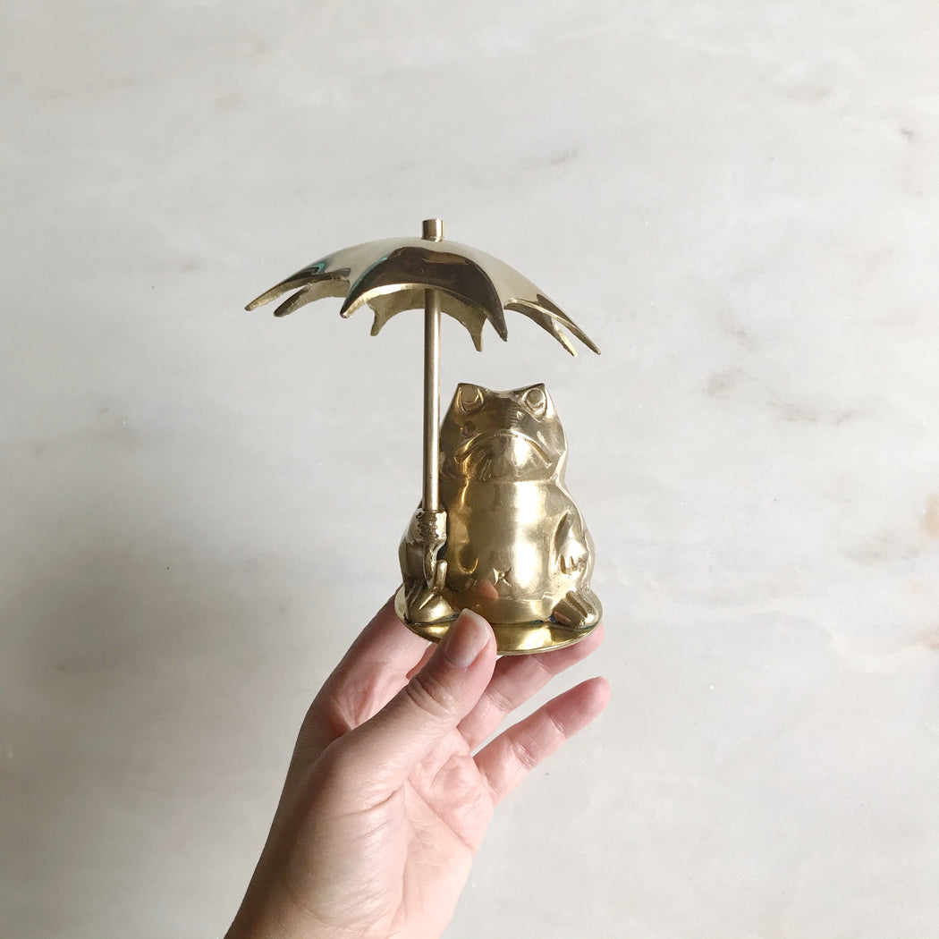 Adorable large vintage brass frog with an umbrella! Cute rainy day friend for a child's room, nursery, or for anyone who adores frogs!