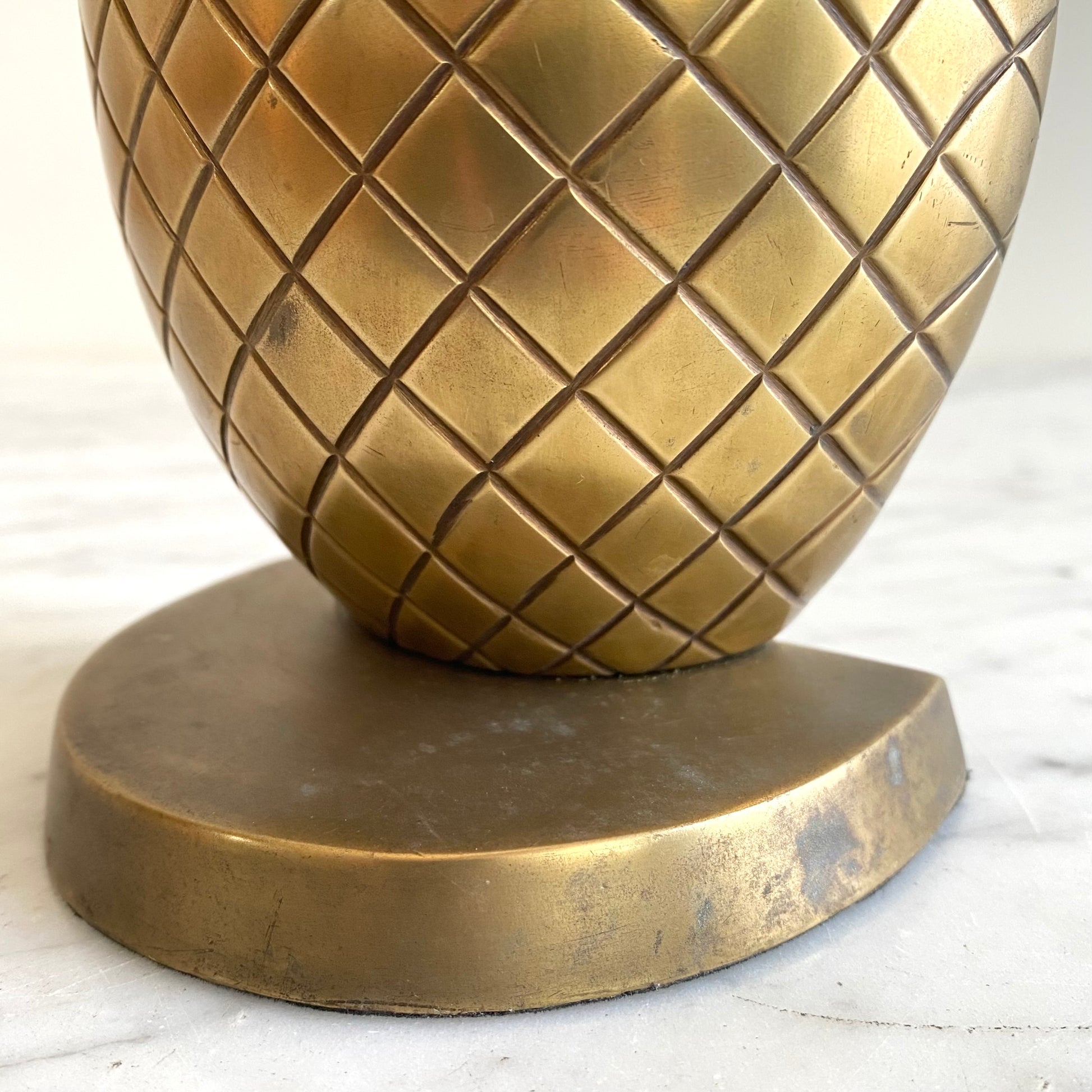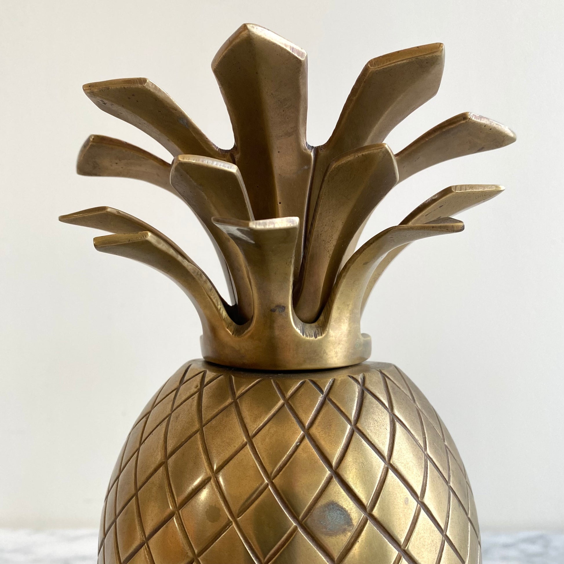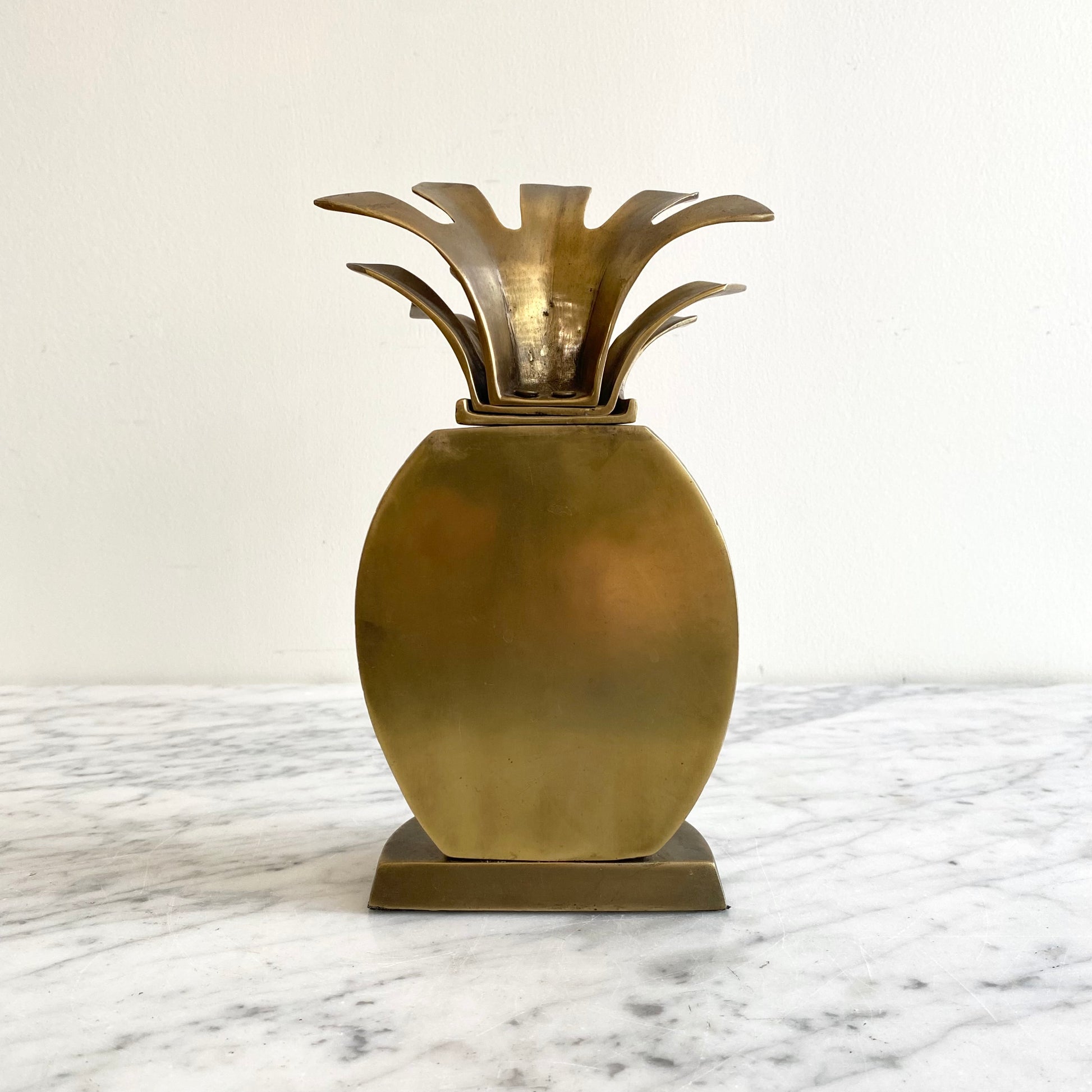 A beautiful vintage brass pineapple bookend to adorn your bookshelf! It has lovely details, texture, and a wonderful patina!
