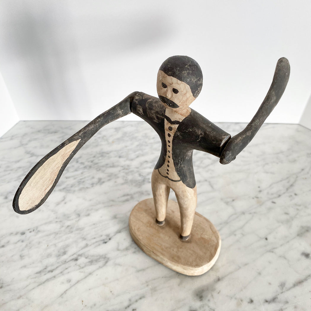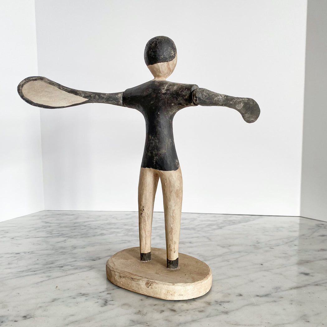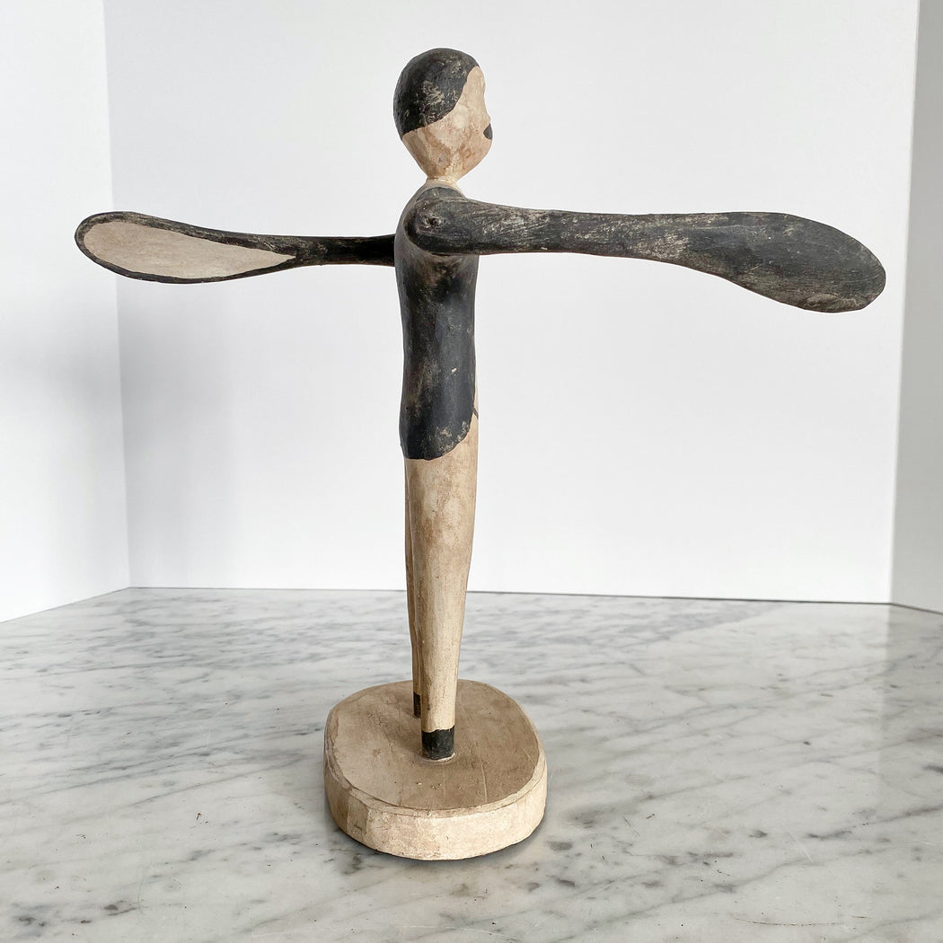 An incredibly charming primitive vintage wooden folk art whirligig! Wonderfully carved and hand painted.