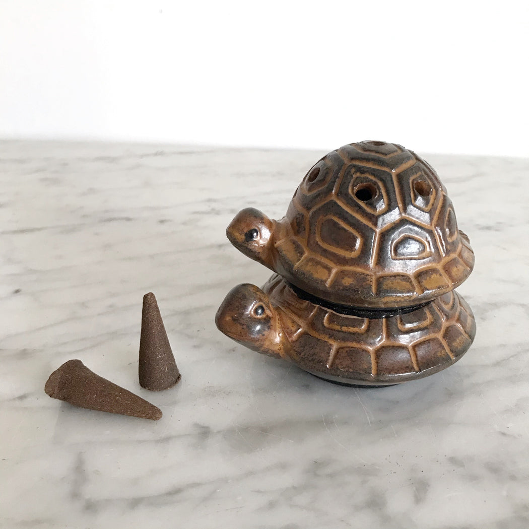 Not your average incense burner, these darling stacked turtles add just the right touch of whimsy. Perfect for cone incense.