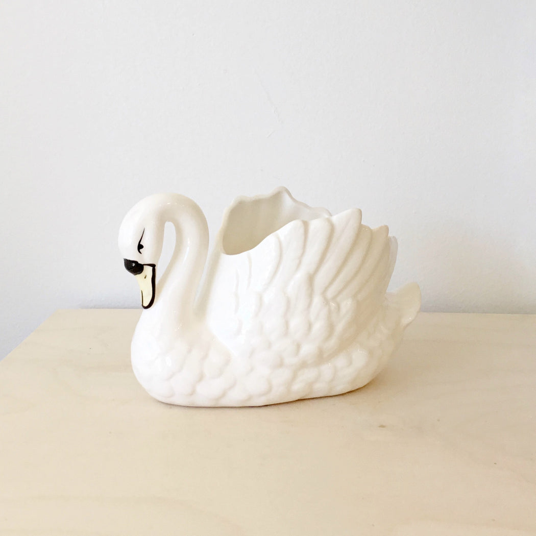 Lovely vintage ceramic swan for your indoor plant, pencils, or holding other objects...
