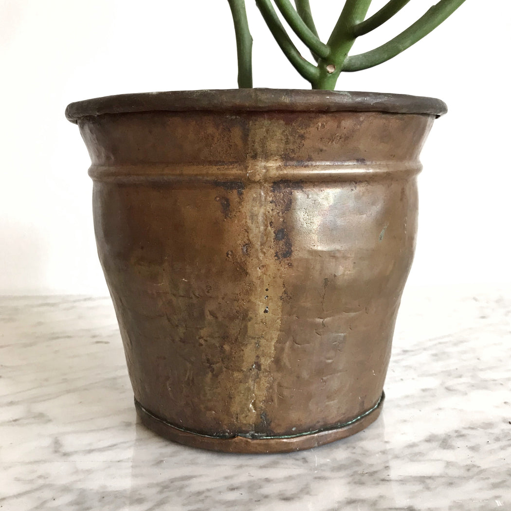This is a gorgeous vintage hammered copper planter with rich color and natural patina. Can be used to house your favorite plant or organize utensils, etc.