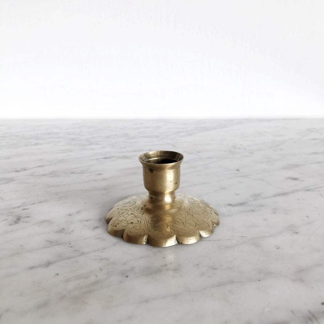 Such a sweet vintage etched brass candlestick holder with scalloped base!