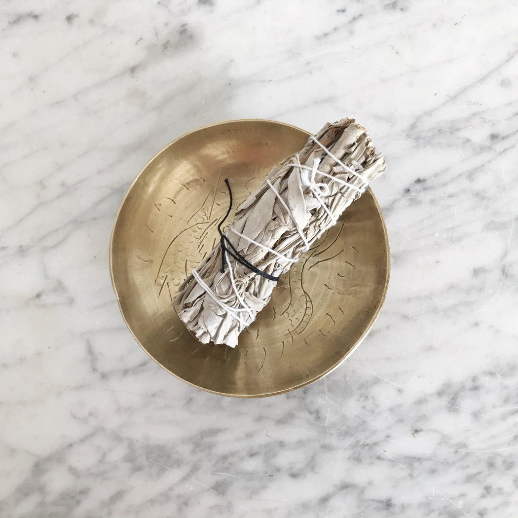 This pretty vintage dish features a lovely etched abstracted dragon design on the top and a footed base. Perfect for holding your smudge stick, incense, candle, or even your jewelry!