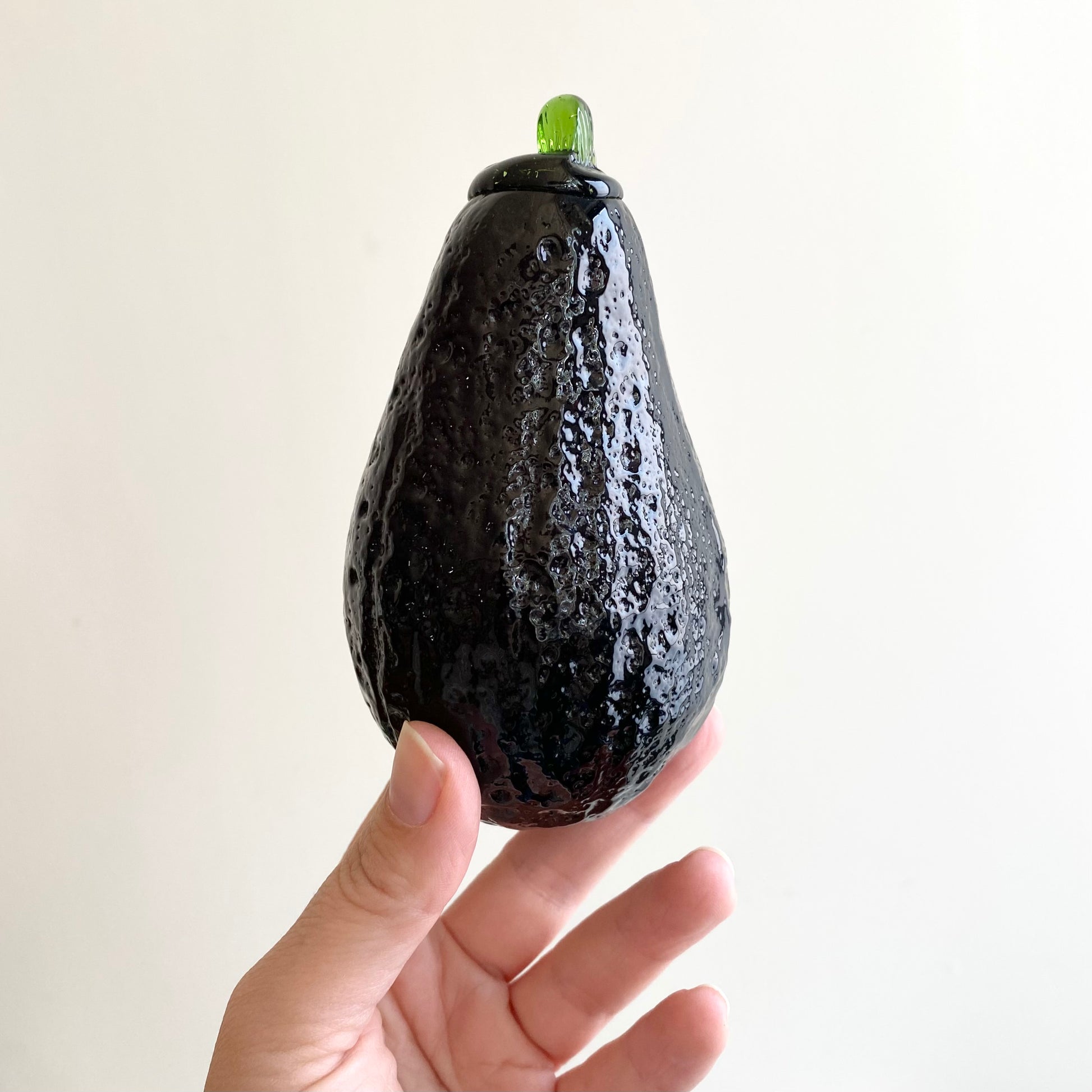 A gorgeous vintage glass avocado! Beautiful color, texture, and a lot of whimsy...