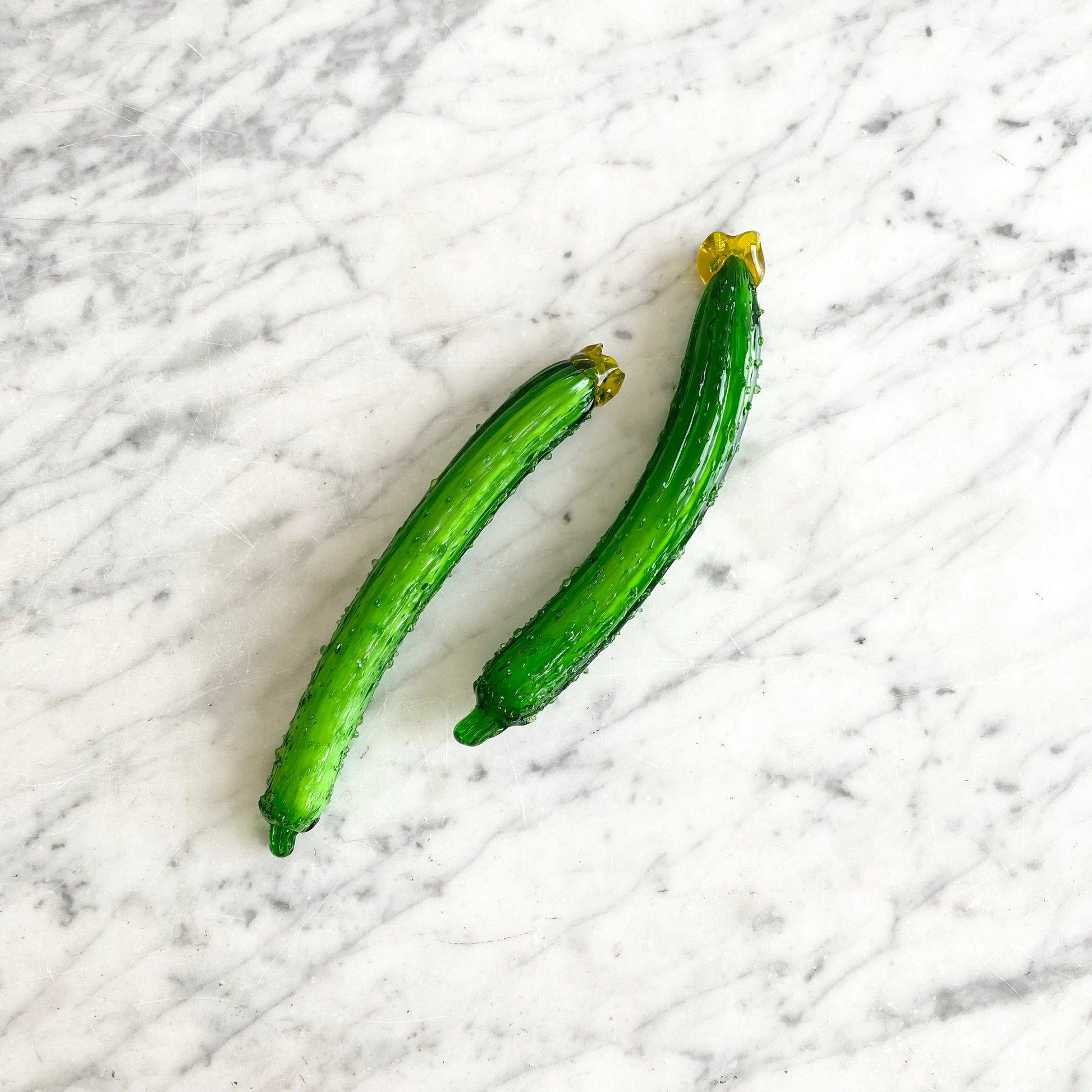Pair of vintage glass cucumbers! Beautiful color, texture, and a lot of whimsy.