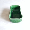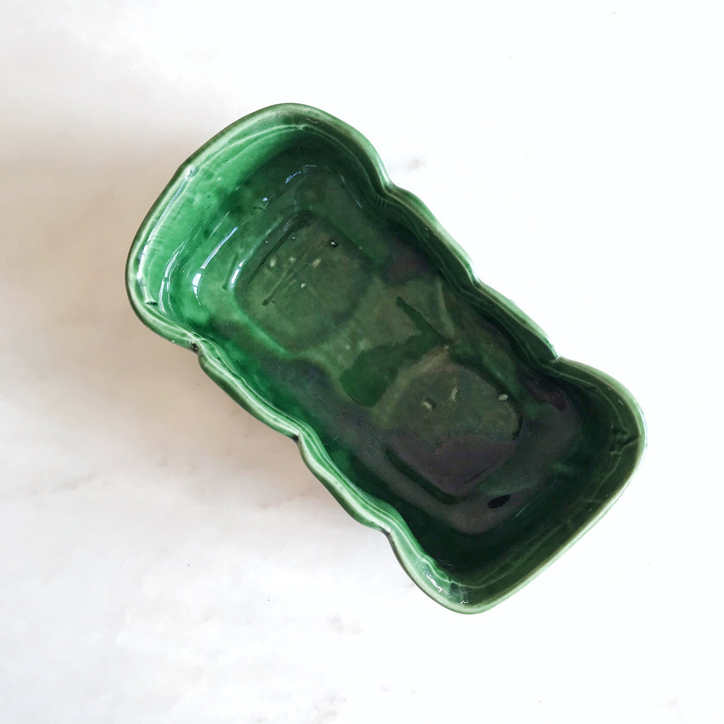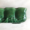 A beautiful leafy green planter for your beautiful leafy green friends! We love the vibrant color and interesting glaze on this one, as well as the leafy texture on the bottom!