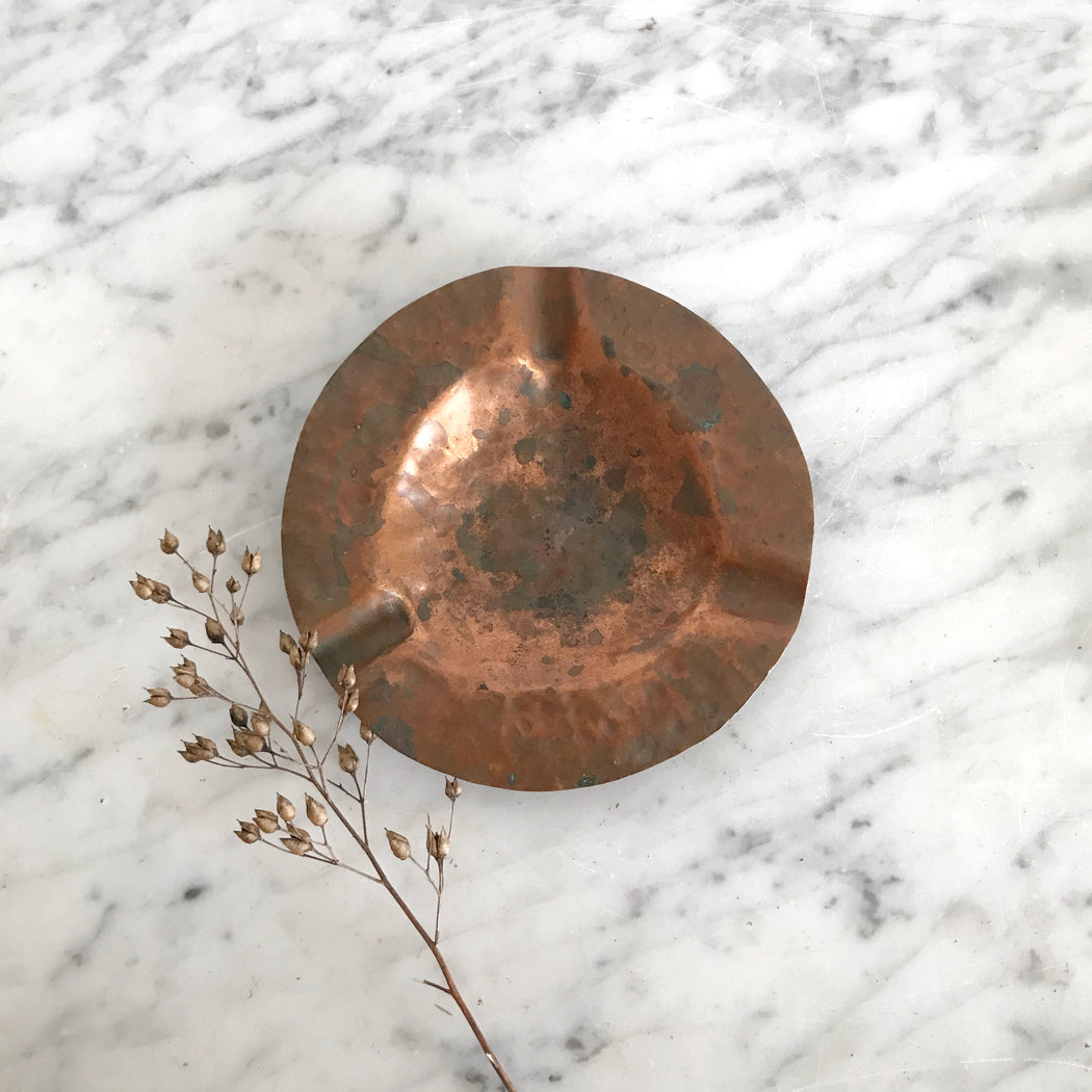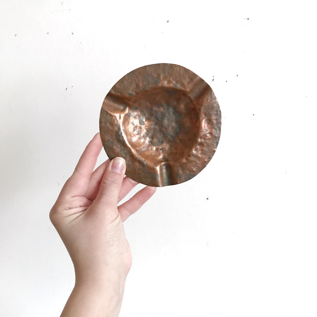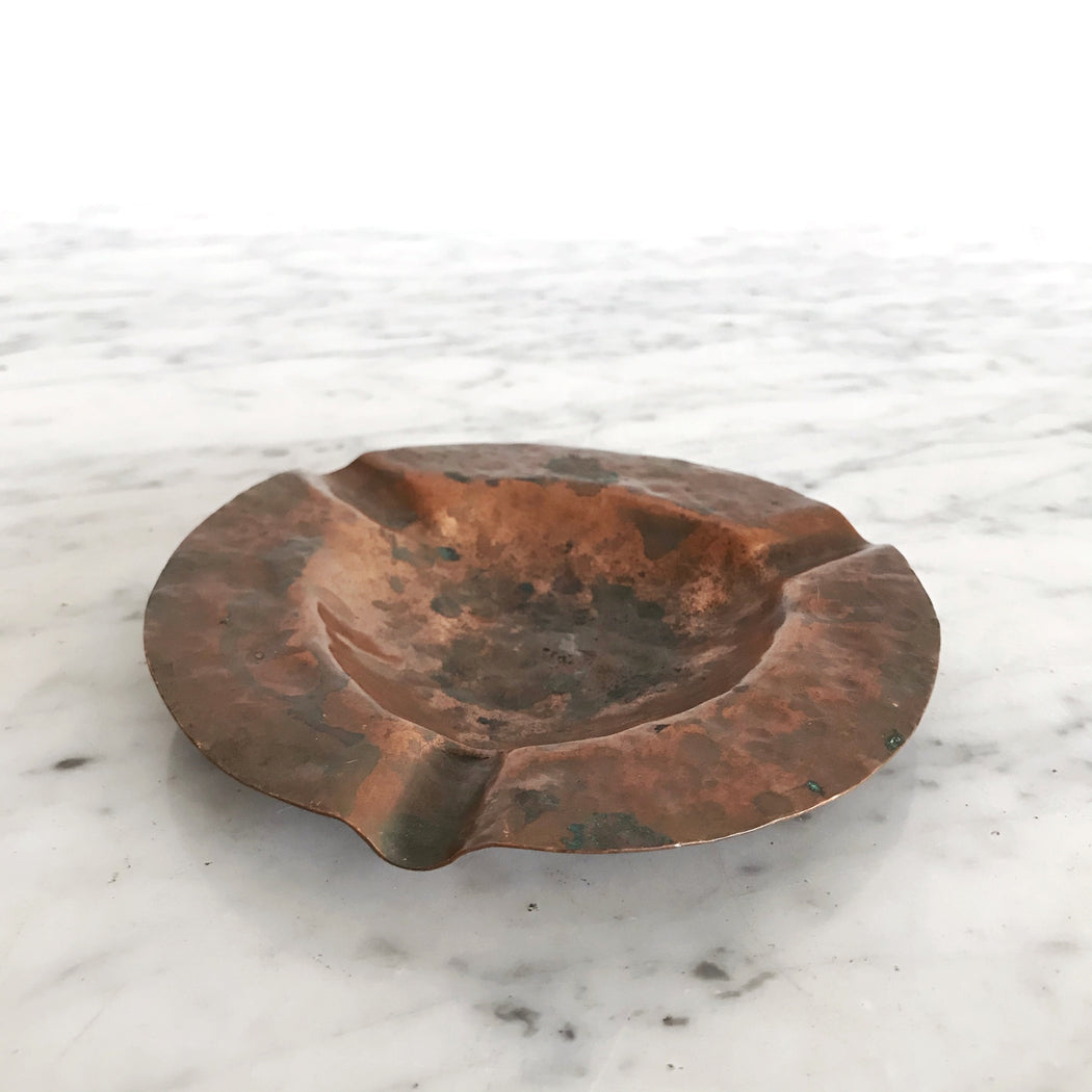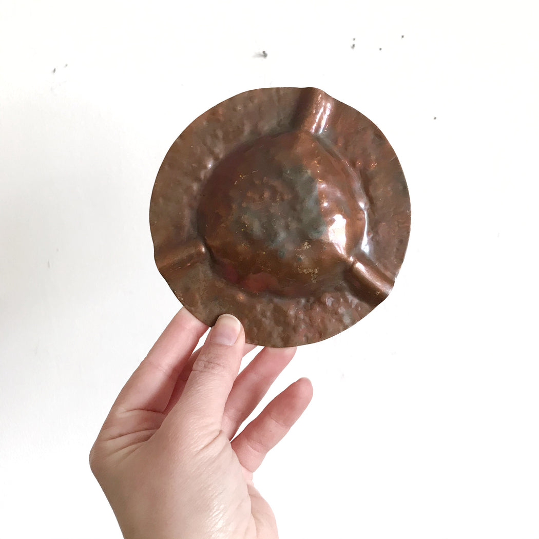 This vintage hammered copper ashtray has a beautiful patina and makes a great holder for matches or incense cone.