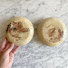 Vintage hand-painted terracotta clay pieces with charming waterfowel birds swimming and decorative edging. Soft cream/butter yellow color with green details.