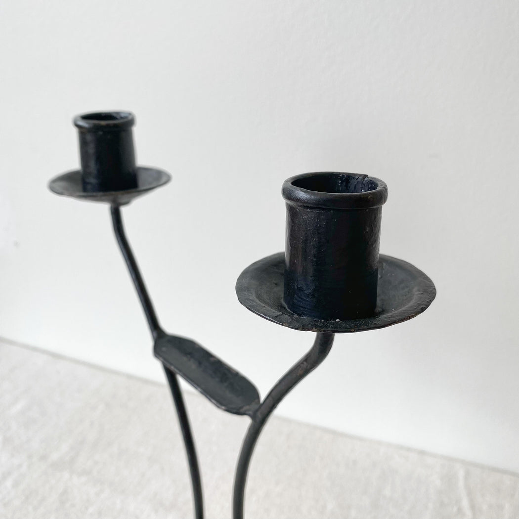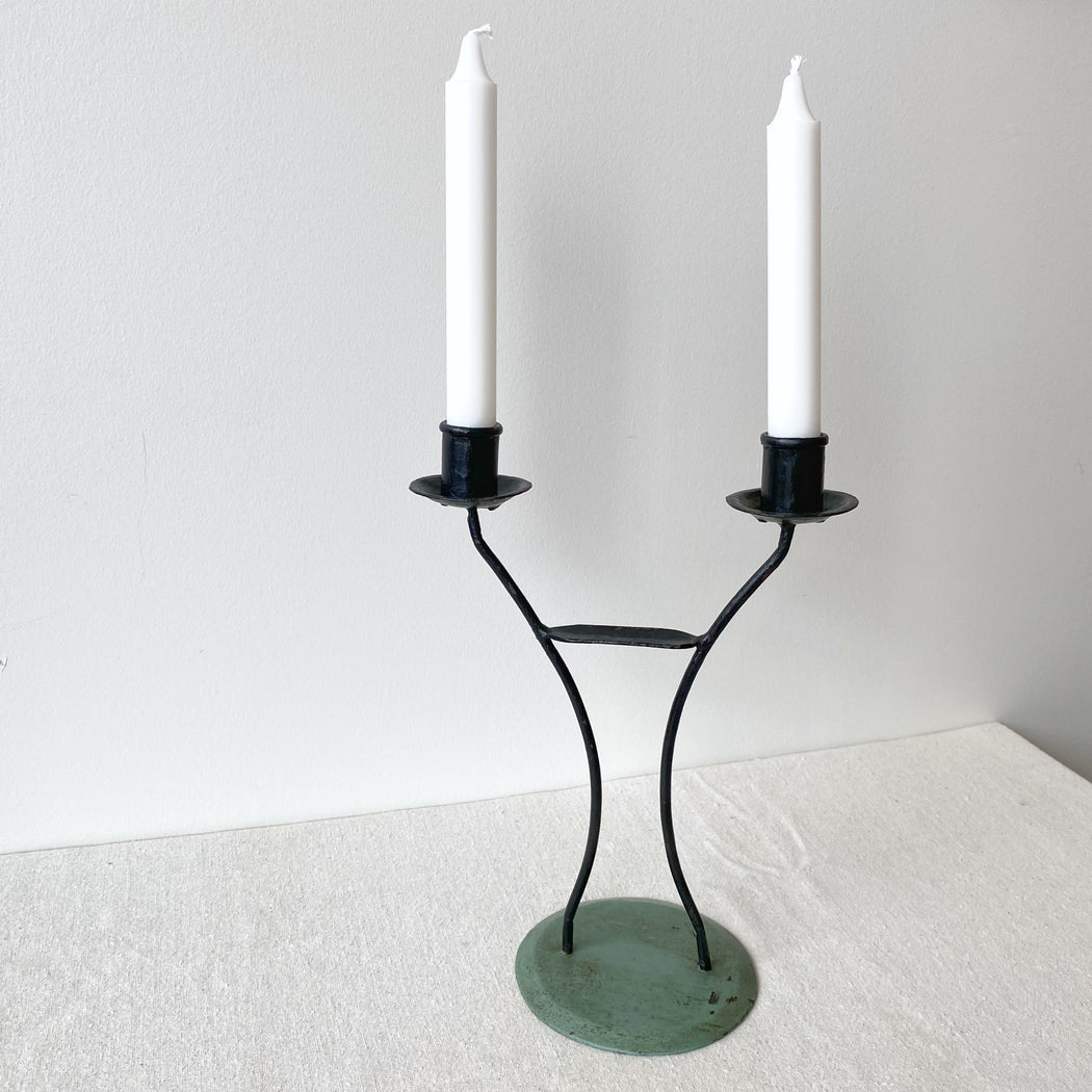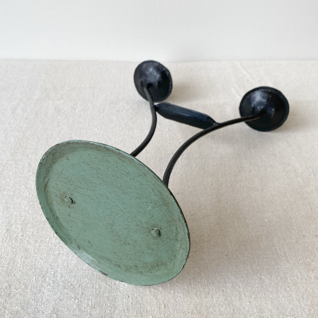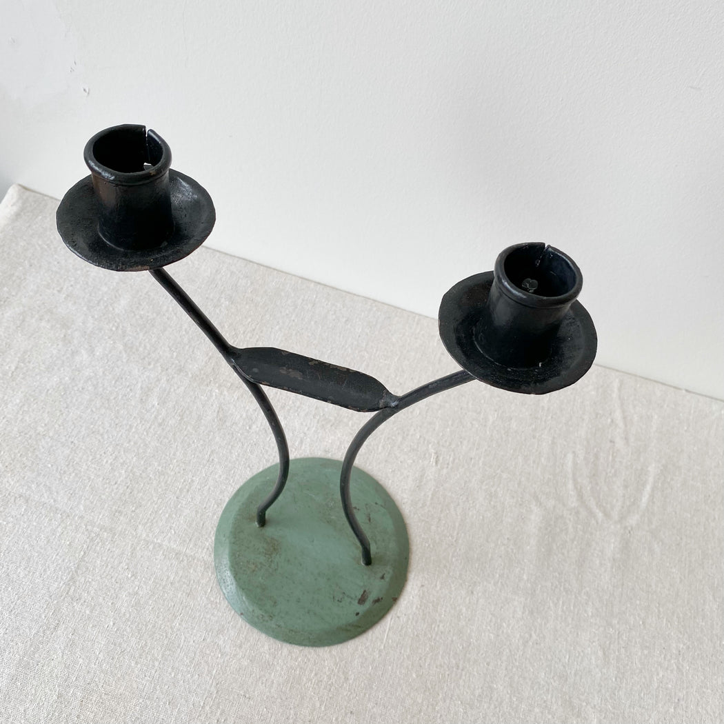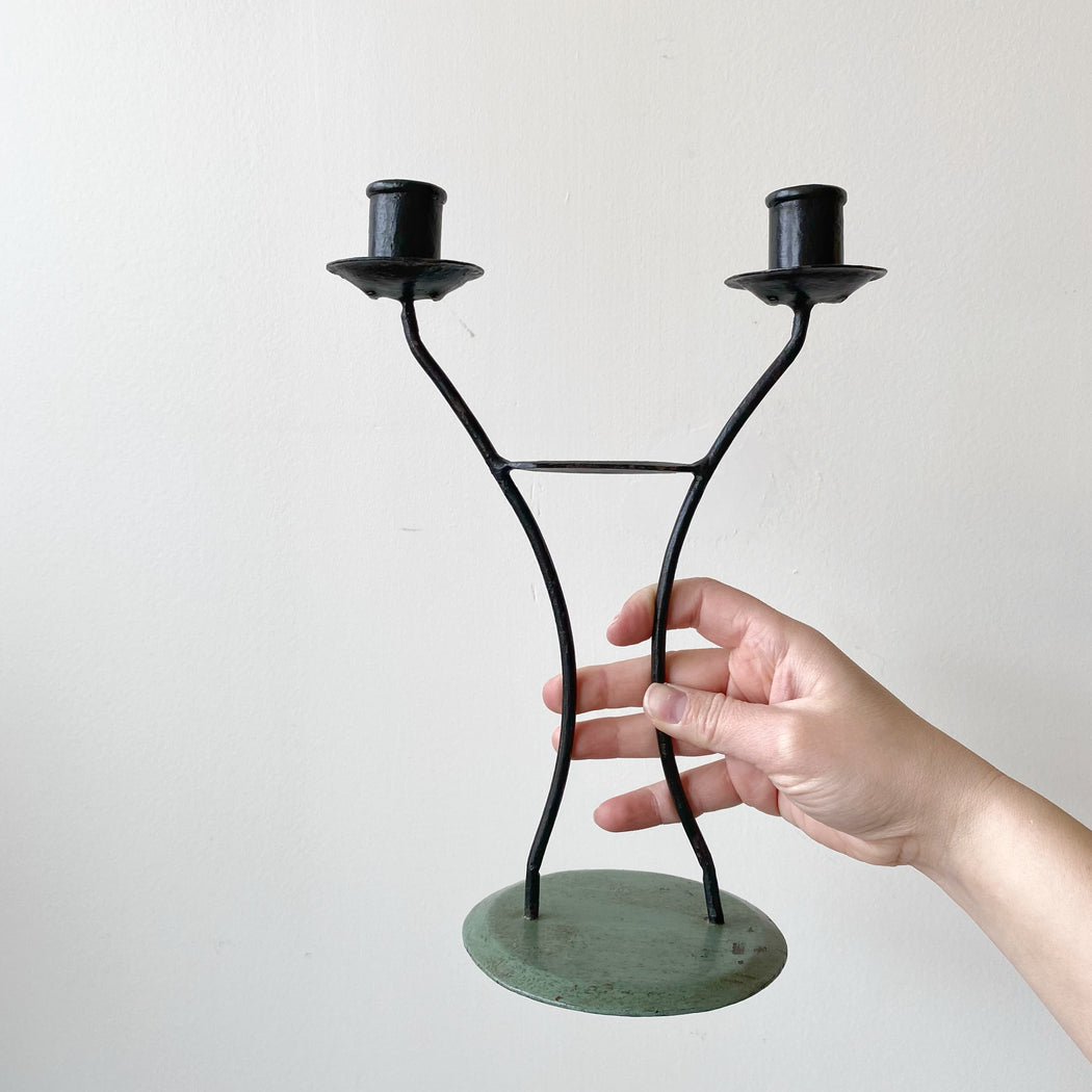 Vintage dual candle holder with a wonderful interesting and unique design. The green painted base is reminiscent of a copper patina, and so lovely!