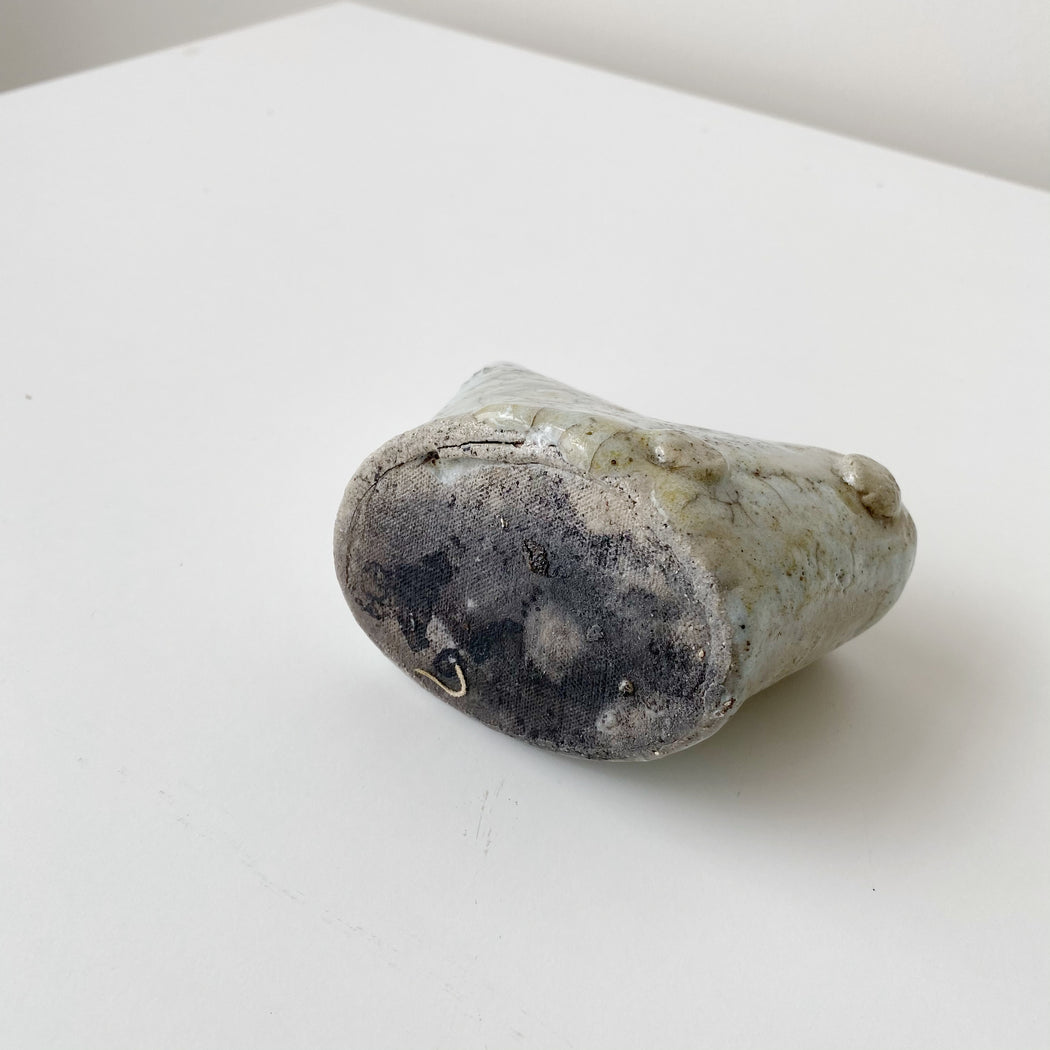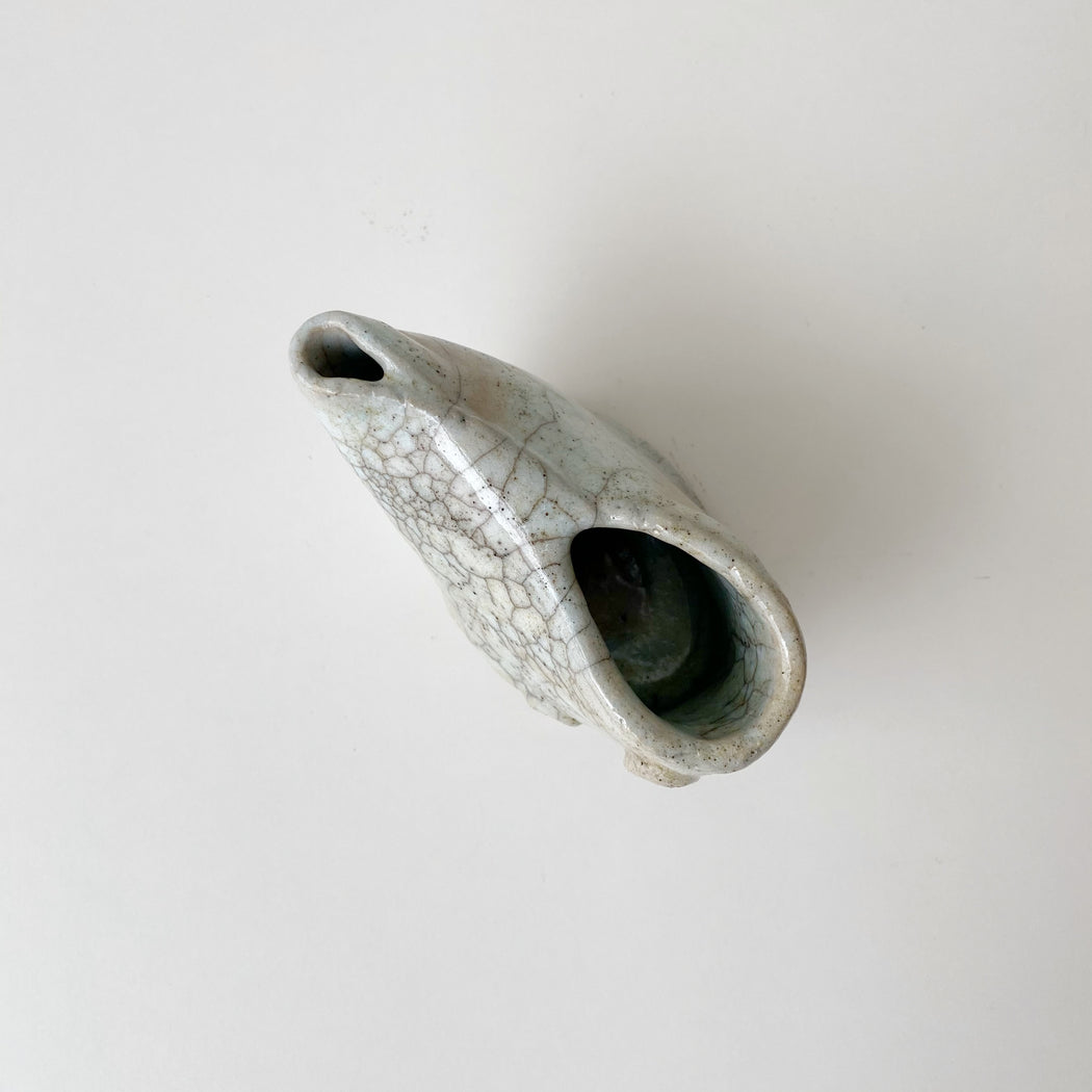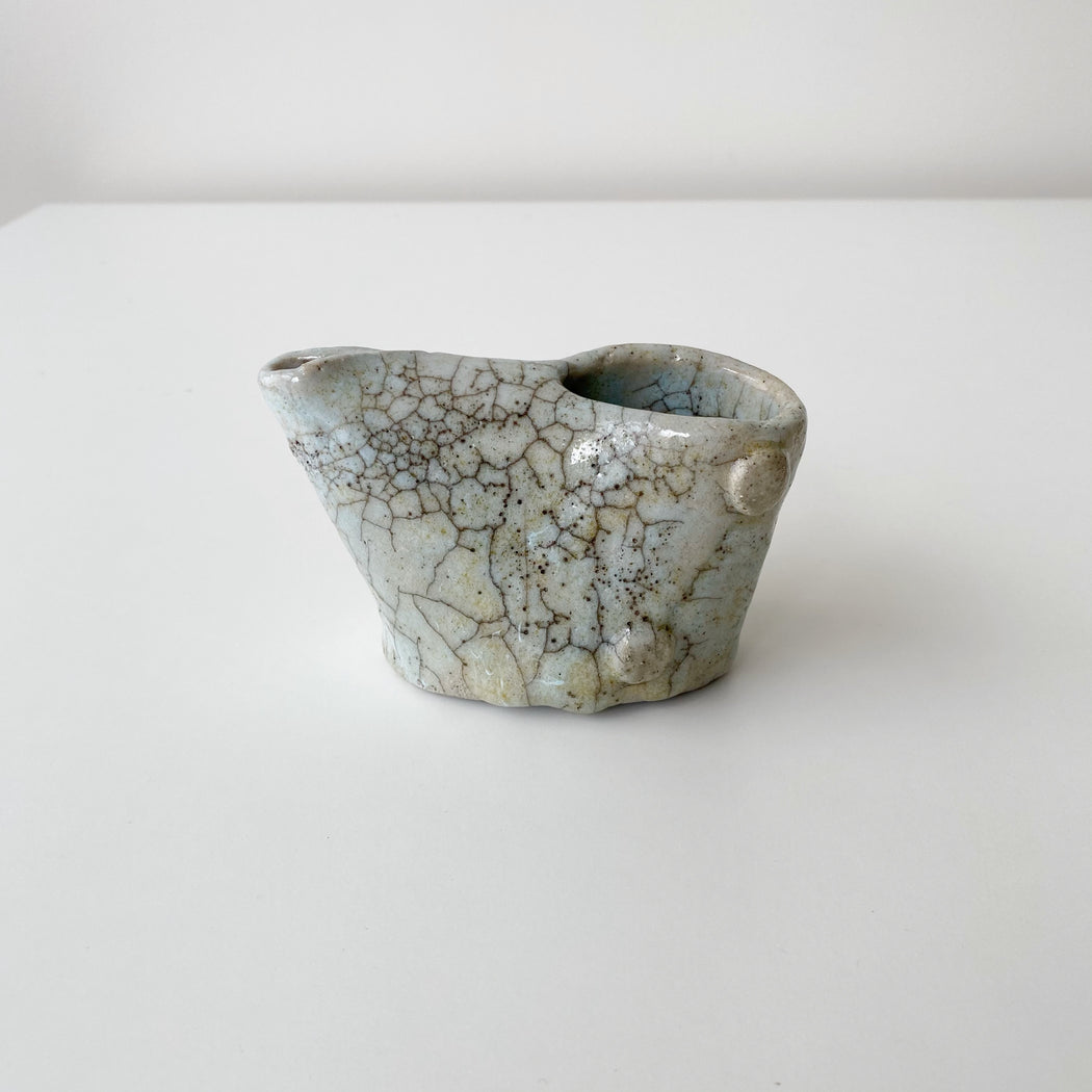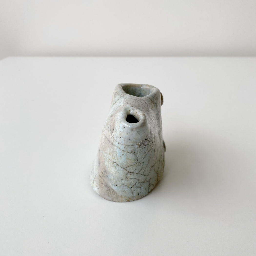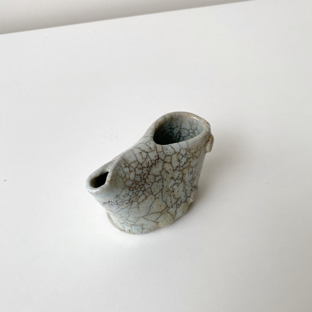 One-of-a-kind handcrafted pottery piece, which could be a creative bud vase! It has a unique crackle texture, and soft pastel coloring.