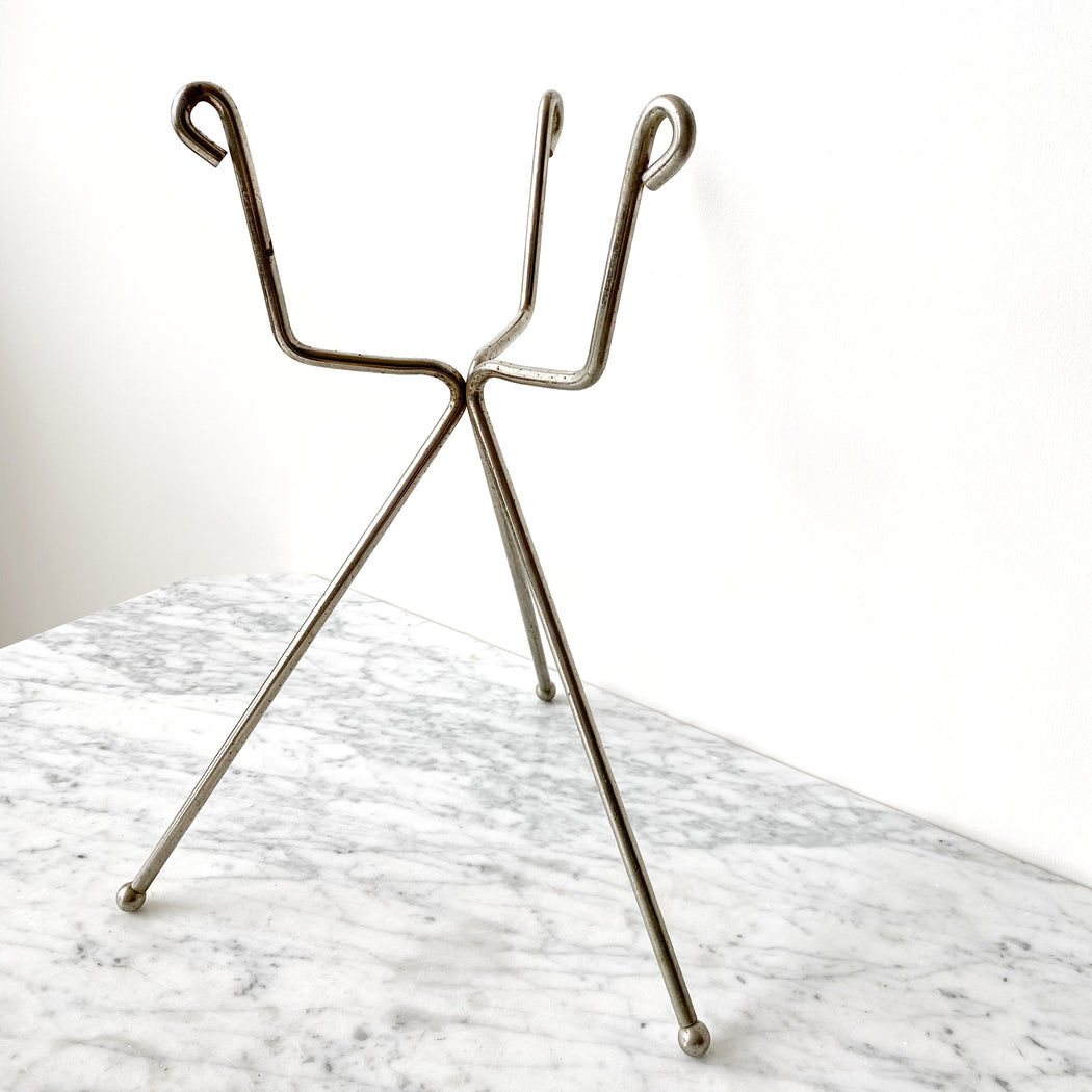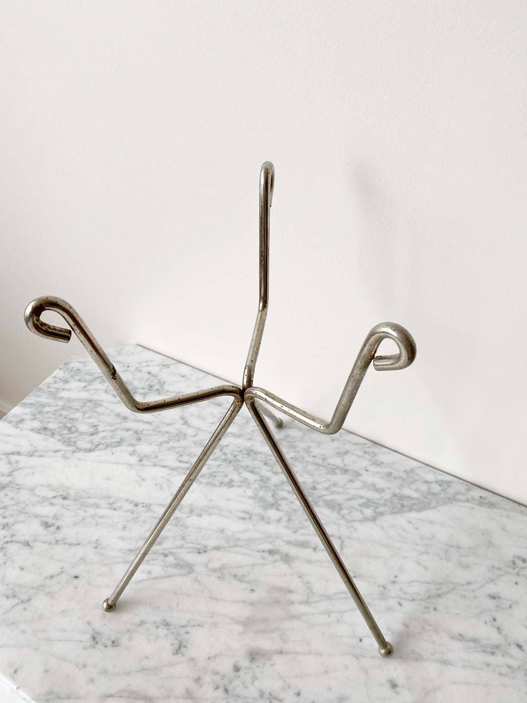Elevation station for your favorite plant friend! This perfectly minimalist, slightly industrial, mid-century chrome plant stand makes a statement with its simplicity. Please note that this listing is for the stand only (no pot or plant is included).
