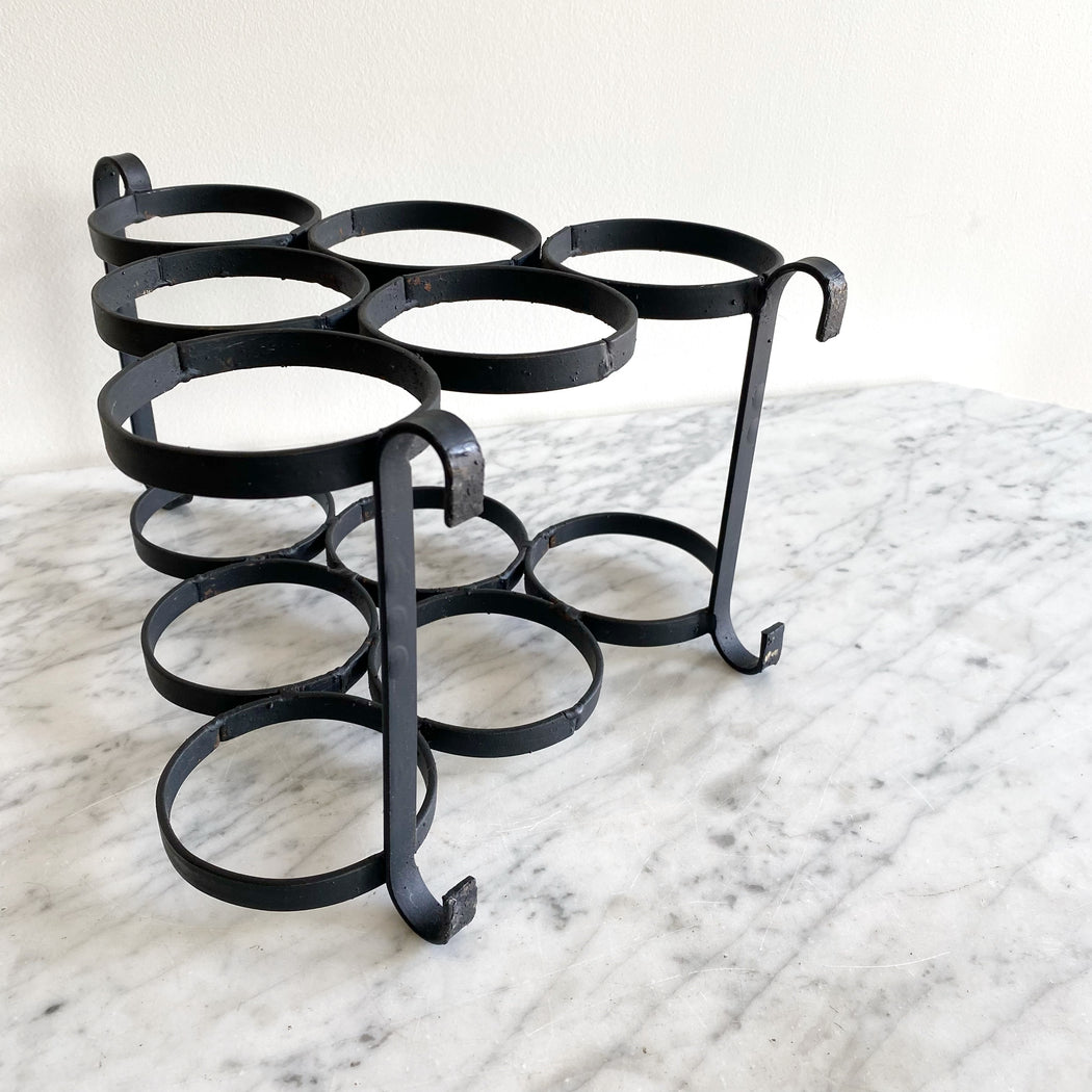 Keep 6 of your favorite bottled beverages on hand with this perfectly simple vintage black iron rack!