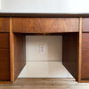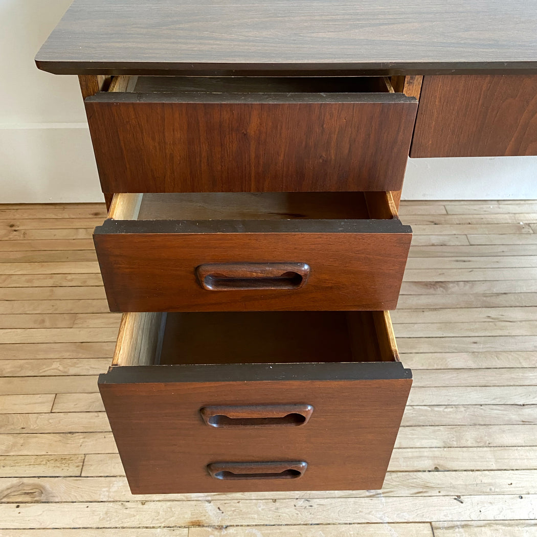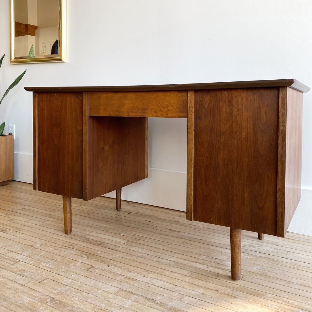 A handsome vintage mid-century modern desk. It’s a great mid-sized piece (not a student/writing size, and not an executive size), which is nice for those wfh situations!
