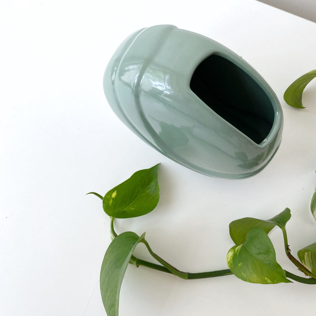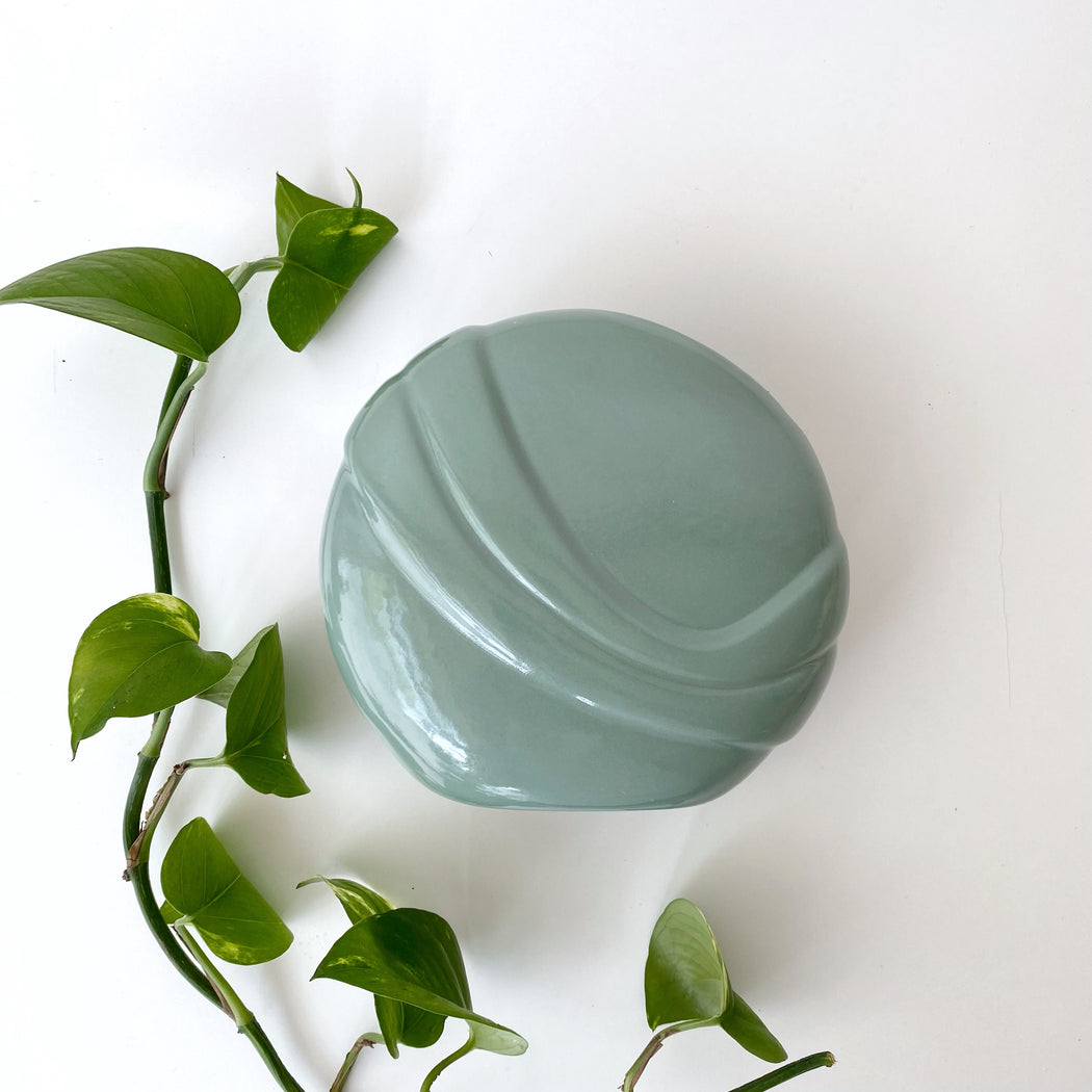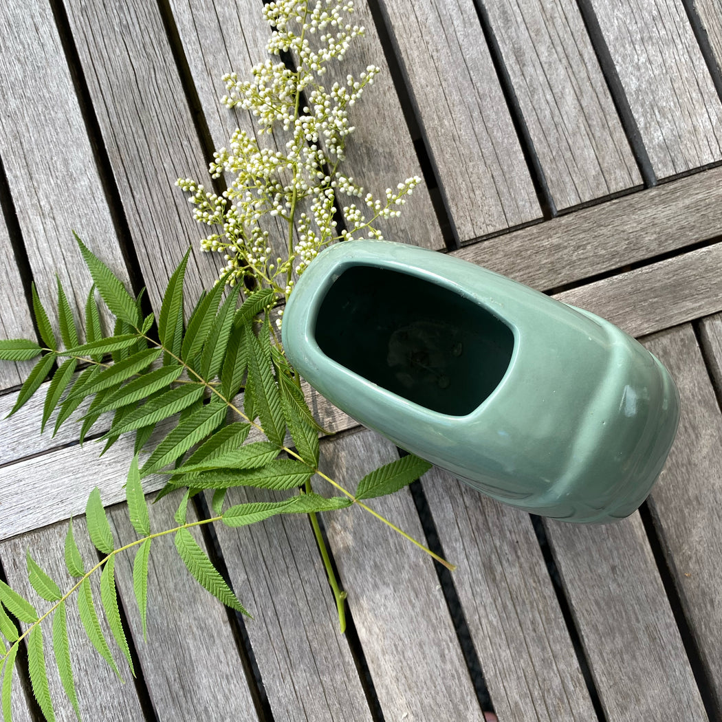 Lovely vintage ceramic vase with soft swooping design and asymmetrical opening.