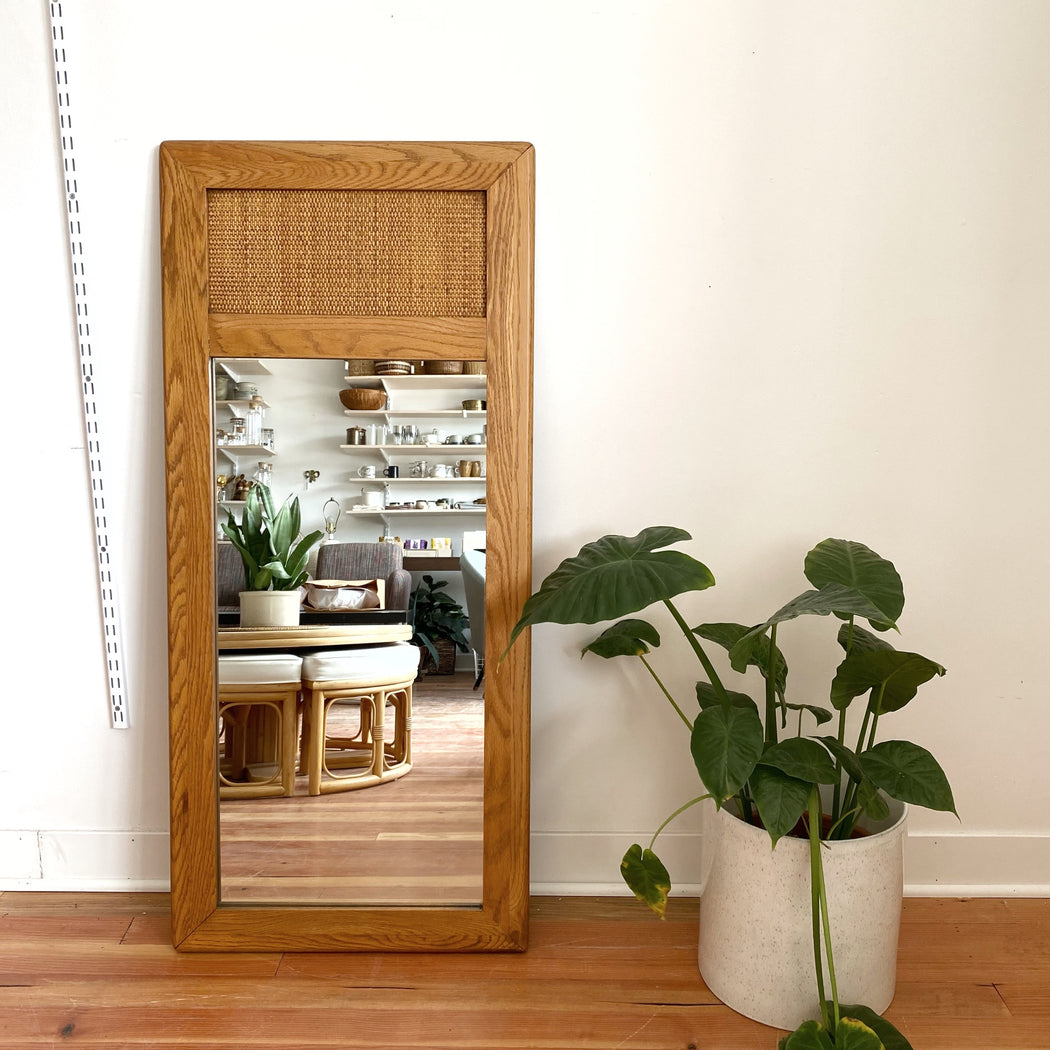 Vintage Oak + Wicker Mirror (51.5” x 23”)