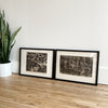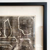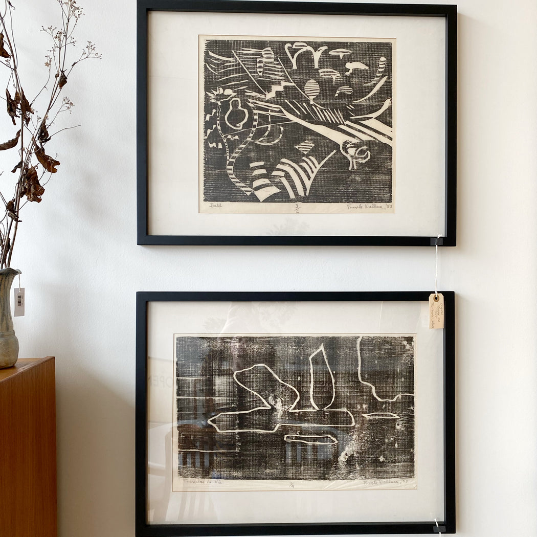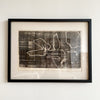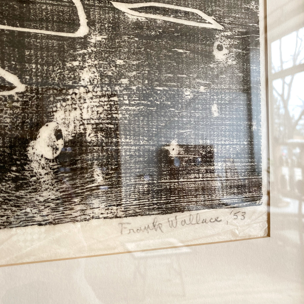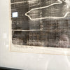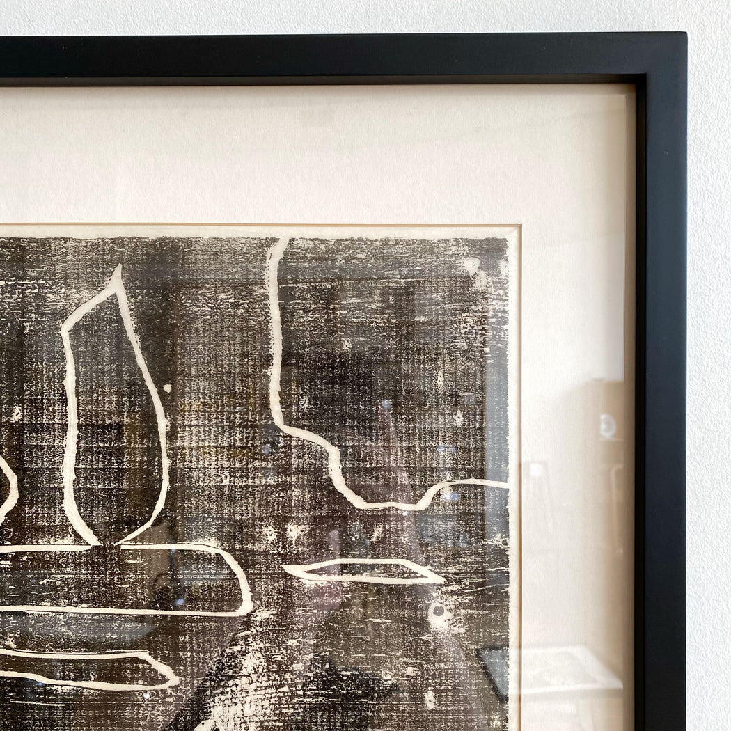 Original block print on tissue, titled, numbered, and signed in pencil. Black ink. Original matting, in a new frame.