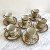 This is an incredible vintage ceramic coffer set! 15 pieces includes: 6 cups, 6 saucers, coffer pot with lid, creamer, sugar bowl with lid. There are no makers marks or signatures, but they are very well crafted and beautifully made (possibly by Harsa). We love the expressive, abstract designs, which are unique on each piece!