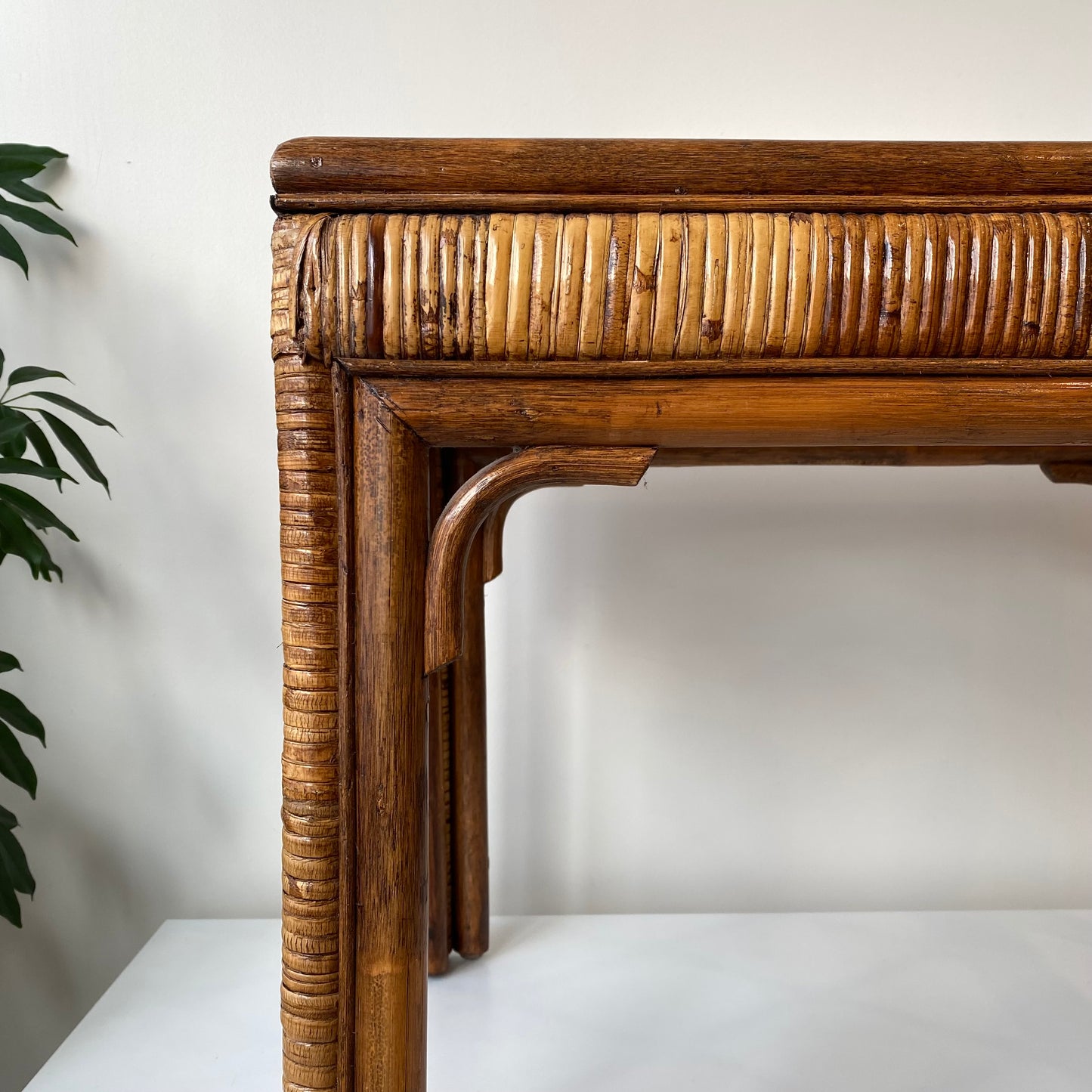 Vintage Rattan + Glass End Table / Side Table