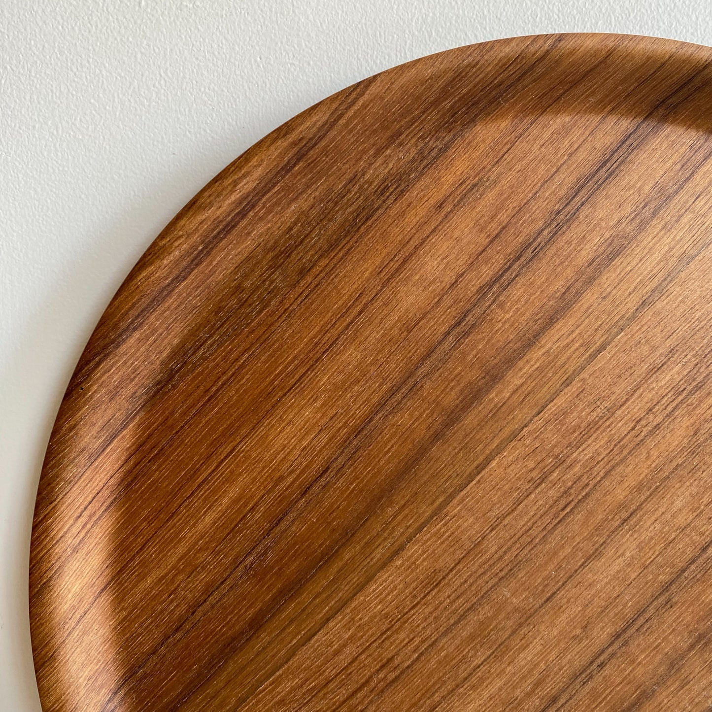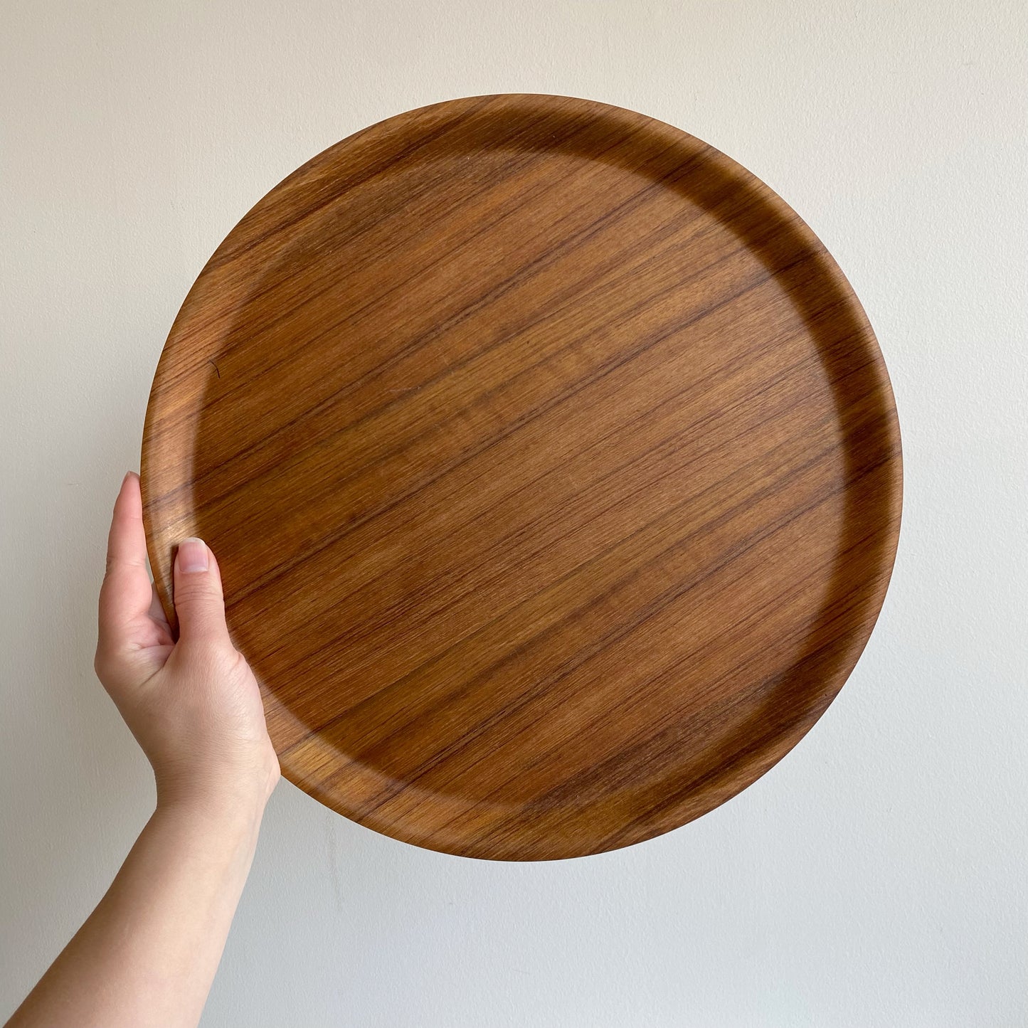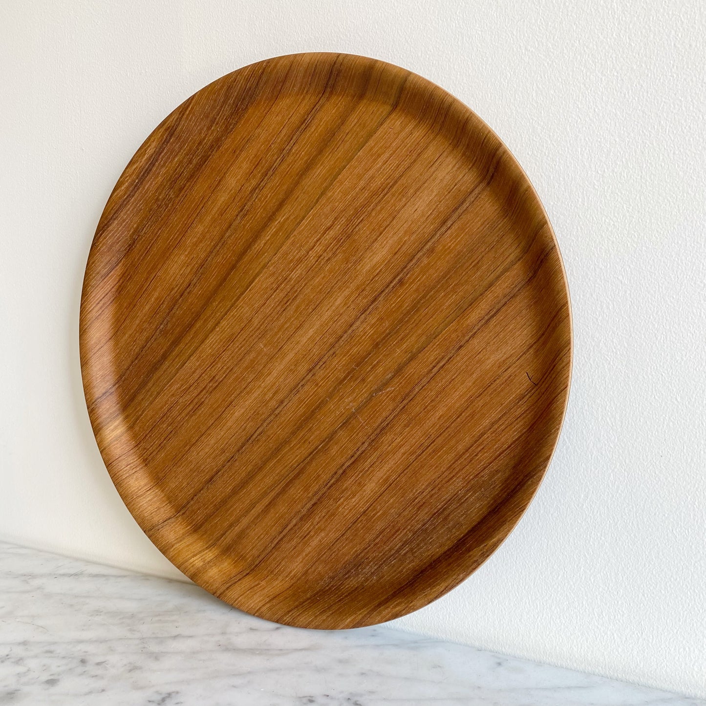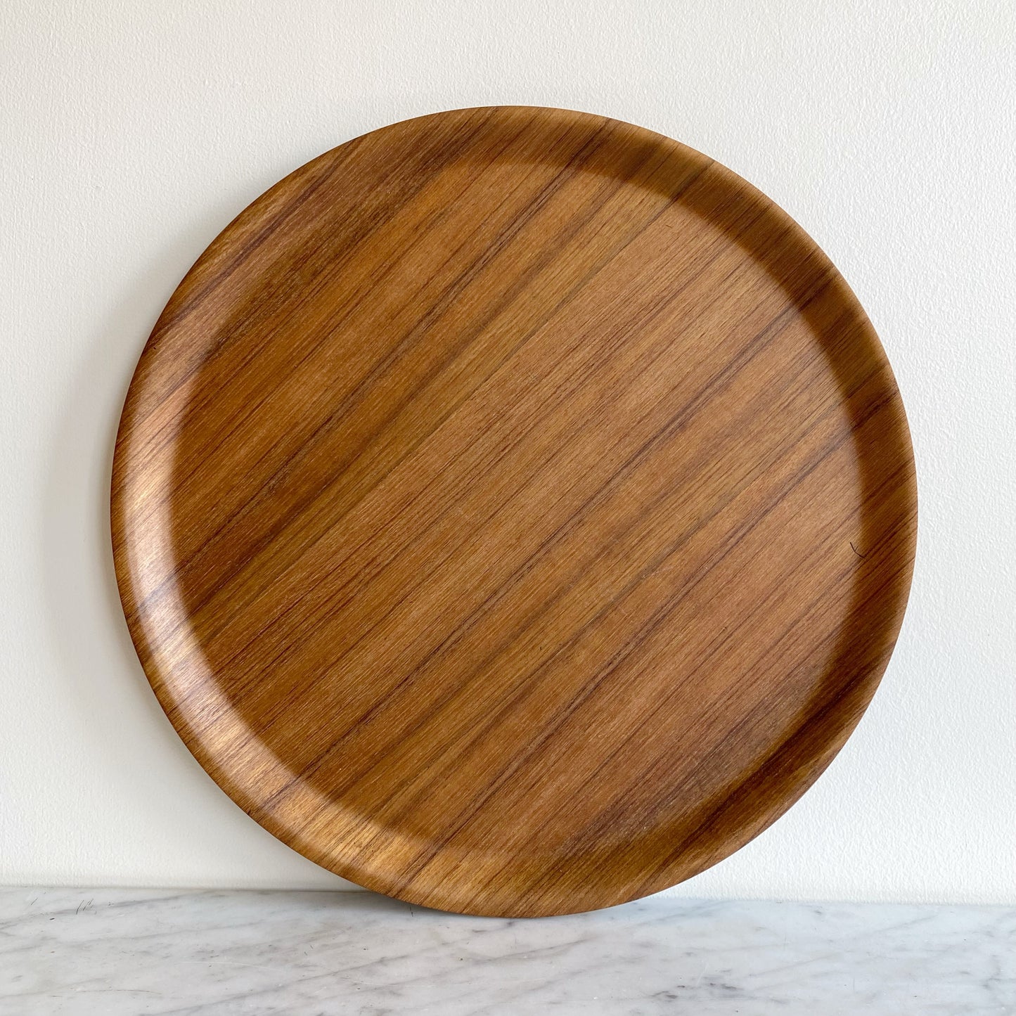 This is a gorgeous vintage teak wood tray with sleek raised edge! A beautiful (and useful!) piece to add to your home, it can be used to anchor a group of smaller items on the table, organize objects on an ottoman, or prop up on an open shelf to admire when not in use.