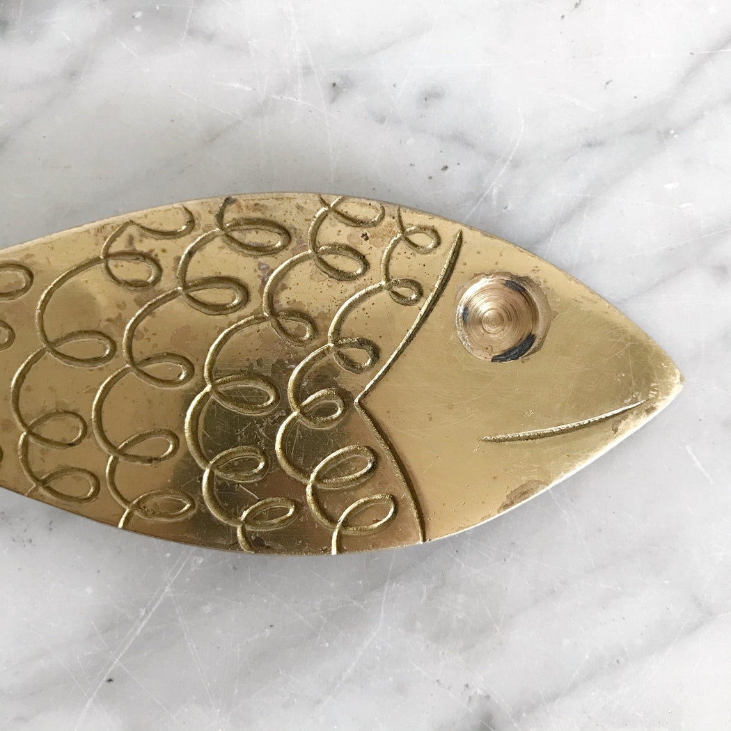Flippin' cool vintage brass fish bottle opener, with the right amount of vintage modernist style! A great conversation piece for your kitchen or bar cart! Made in Israel.