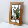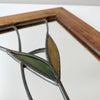 This is a beautiful handcrafted accent mirror featuring a lovely stained glass leaf design and wooden frame. There is a hook on back and is ready to hang.
