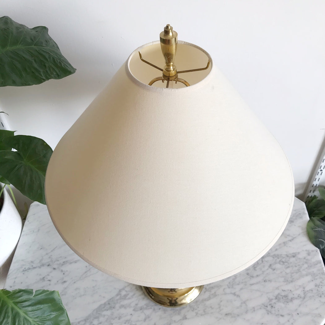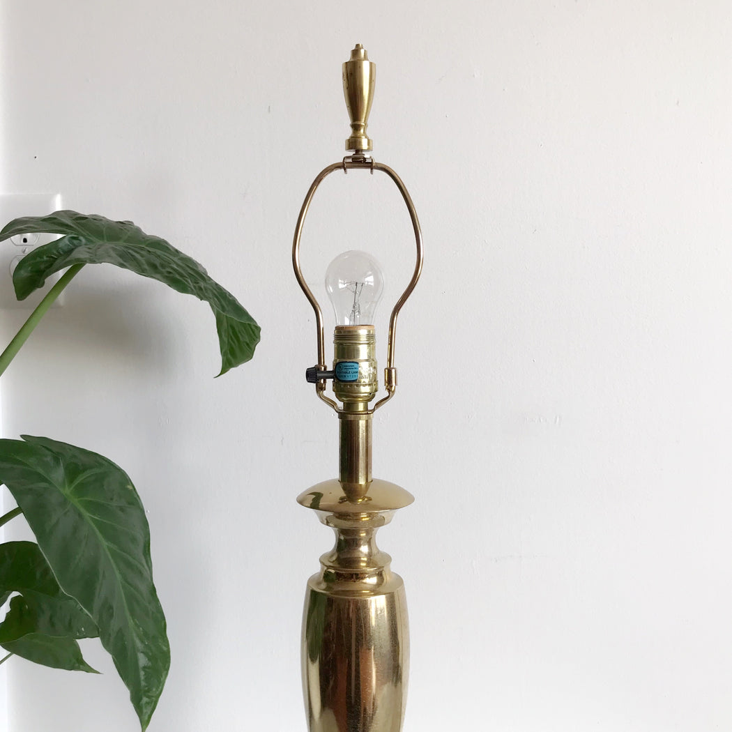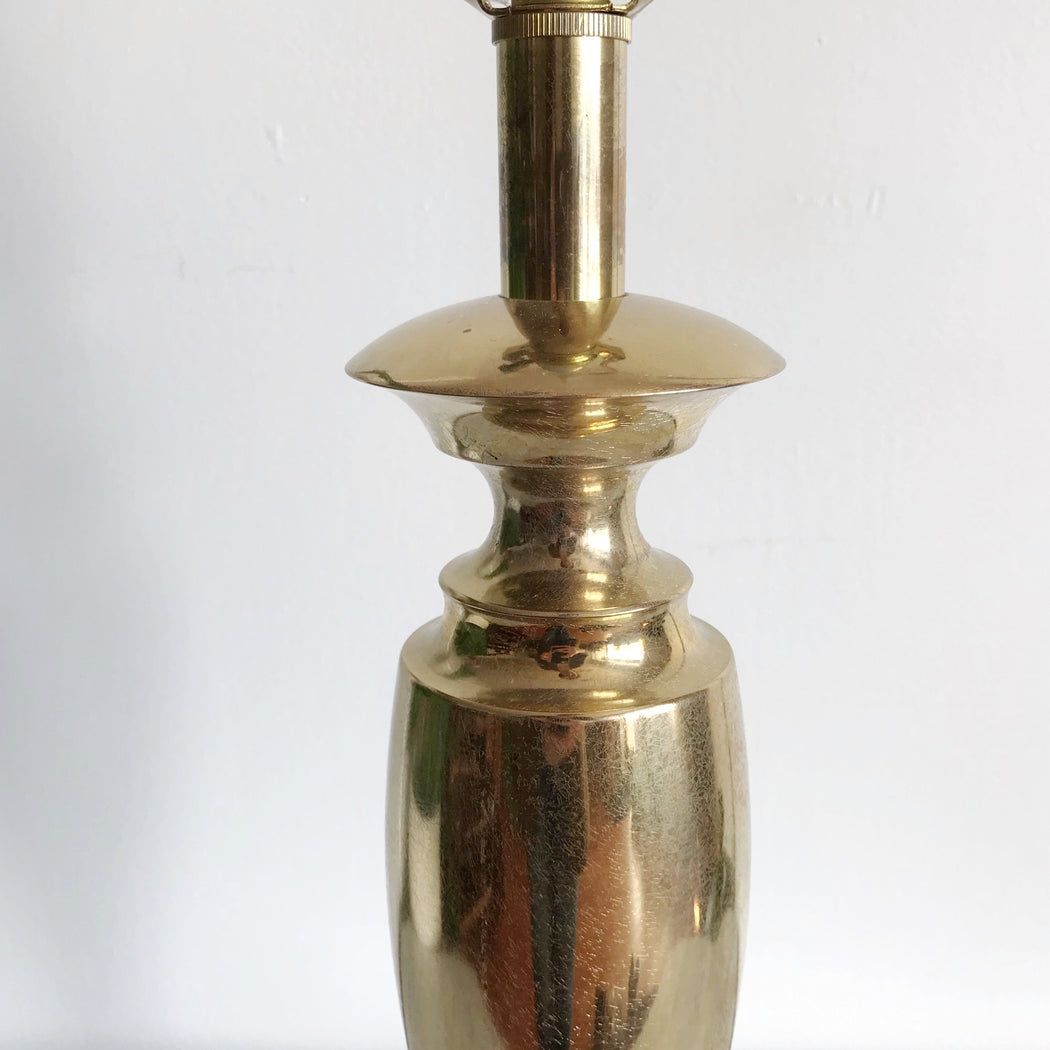 Prettiest vintage brass table lamp by Stiffel— It has a lovely silhouette, a unique “crackle” texture, original finial, and is very heavy! We’ve paired it with a simple vintage shade.