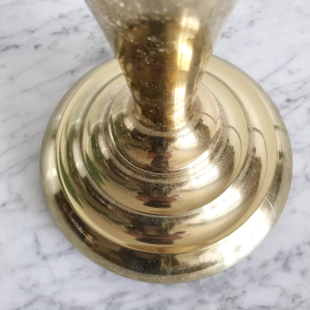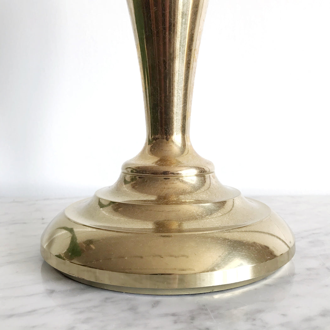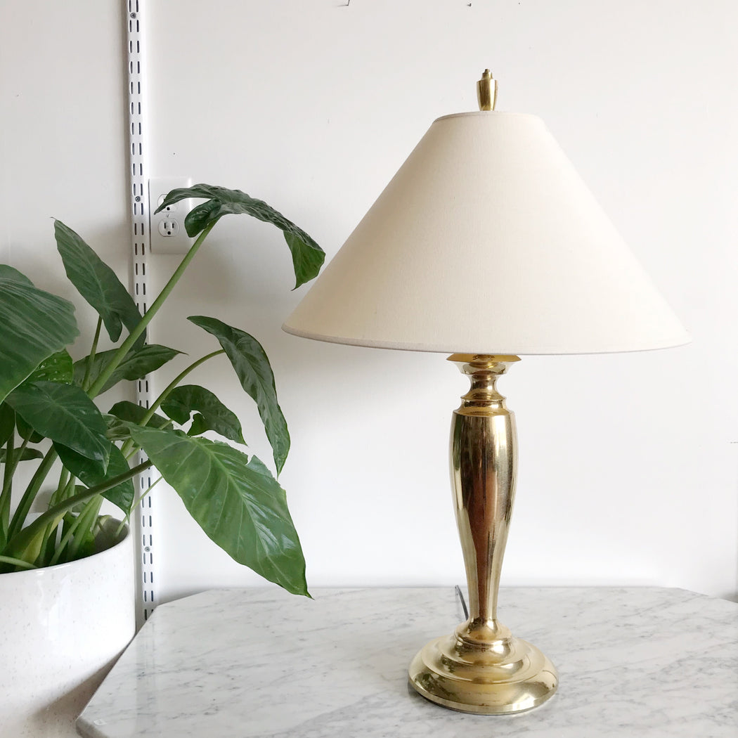 Prettiest vintage brass table lamp by Stiffel— It has a lovely silhouette, a unique “crackle” texture, original finial, and is very heavy! We’ve paired it with a simple vintage shade.