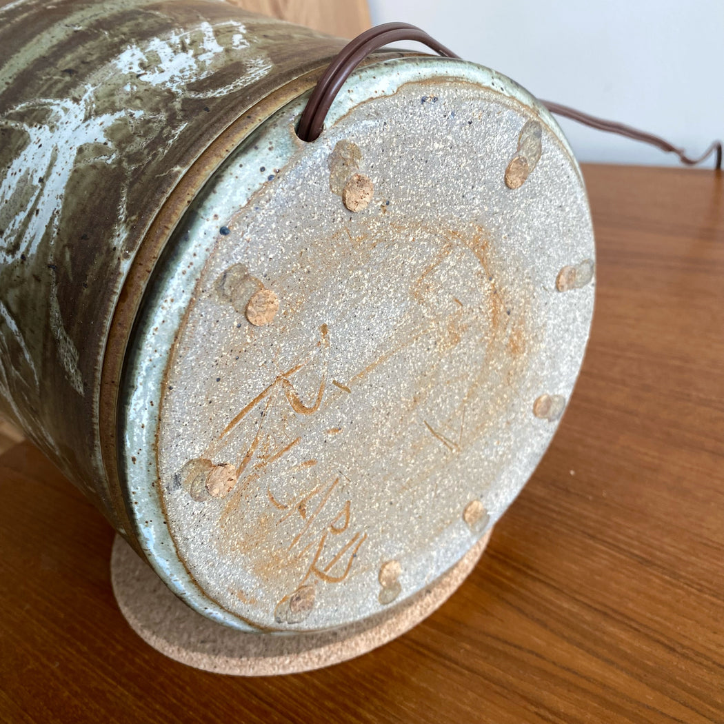 Gorgeous vintage original artist-made (wheel-thrown and hand-glazed) table lamp. It adds warmth, texture, and one-of-a-kind style to any space.