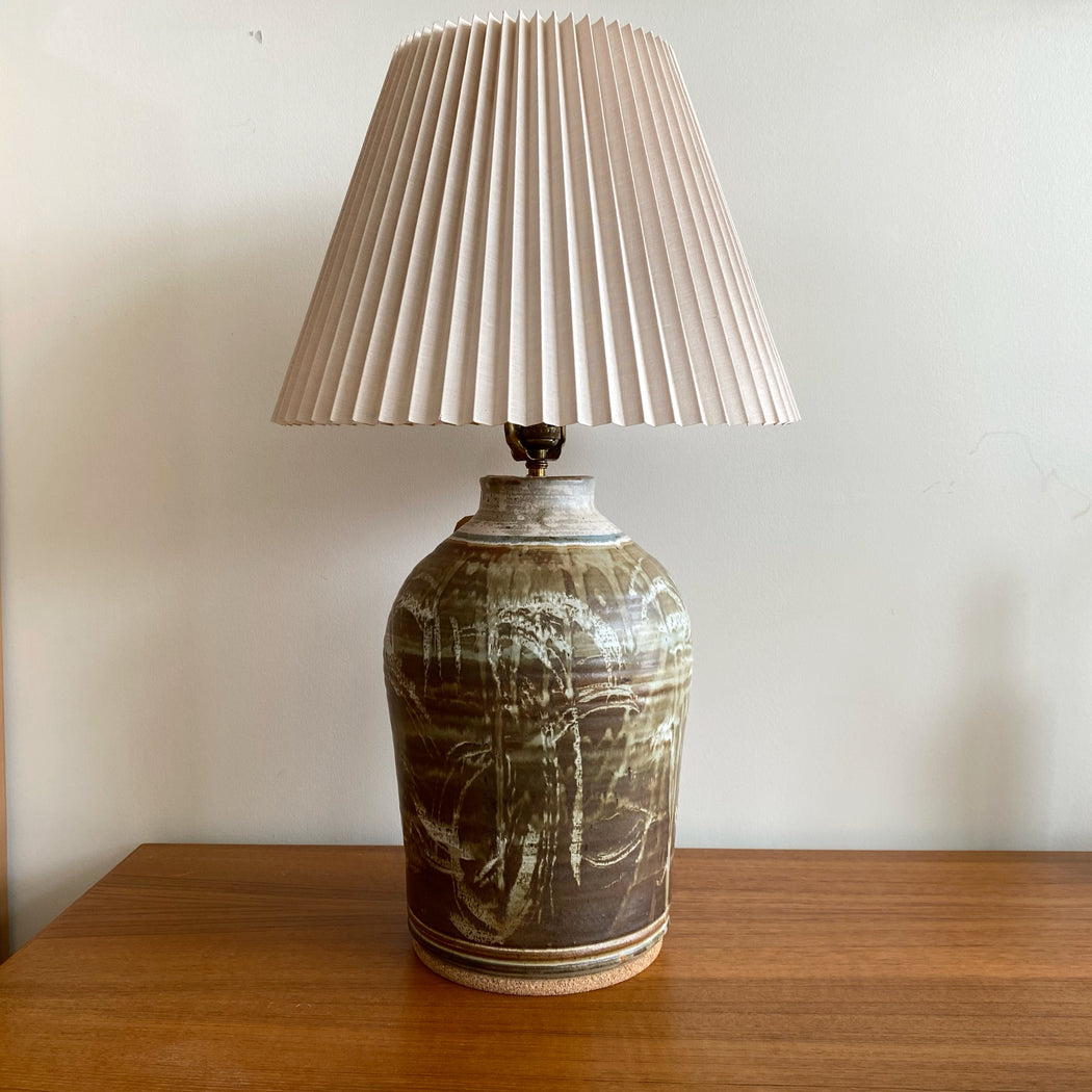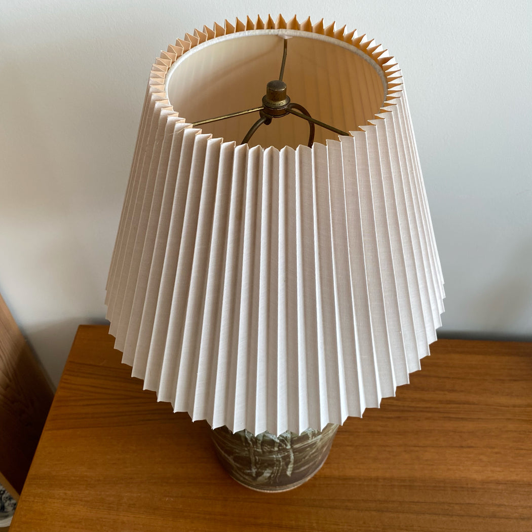 Vintage Studio Pottery Lamp with Pleated Shade
