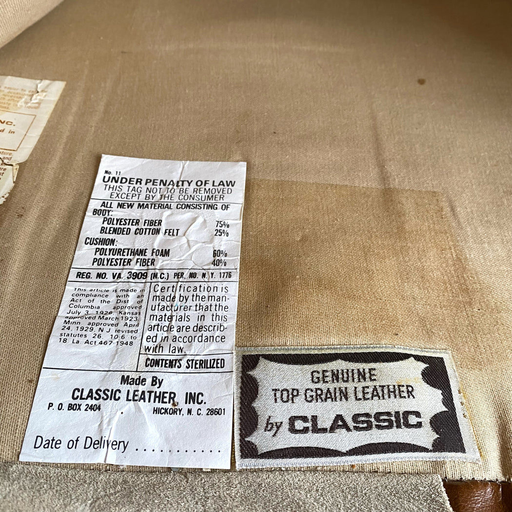 Original label under seat cushion: MADE BY CLASSIC LEATHER, INC.