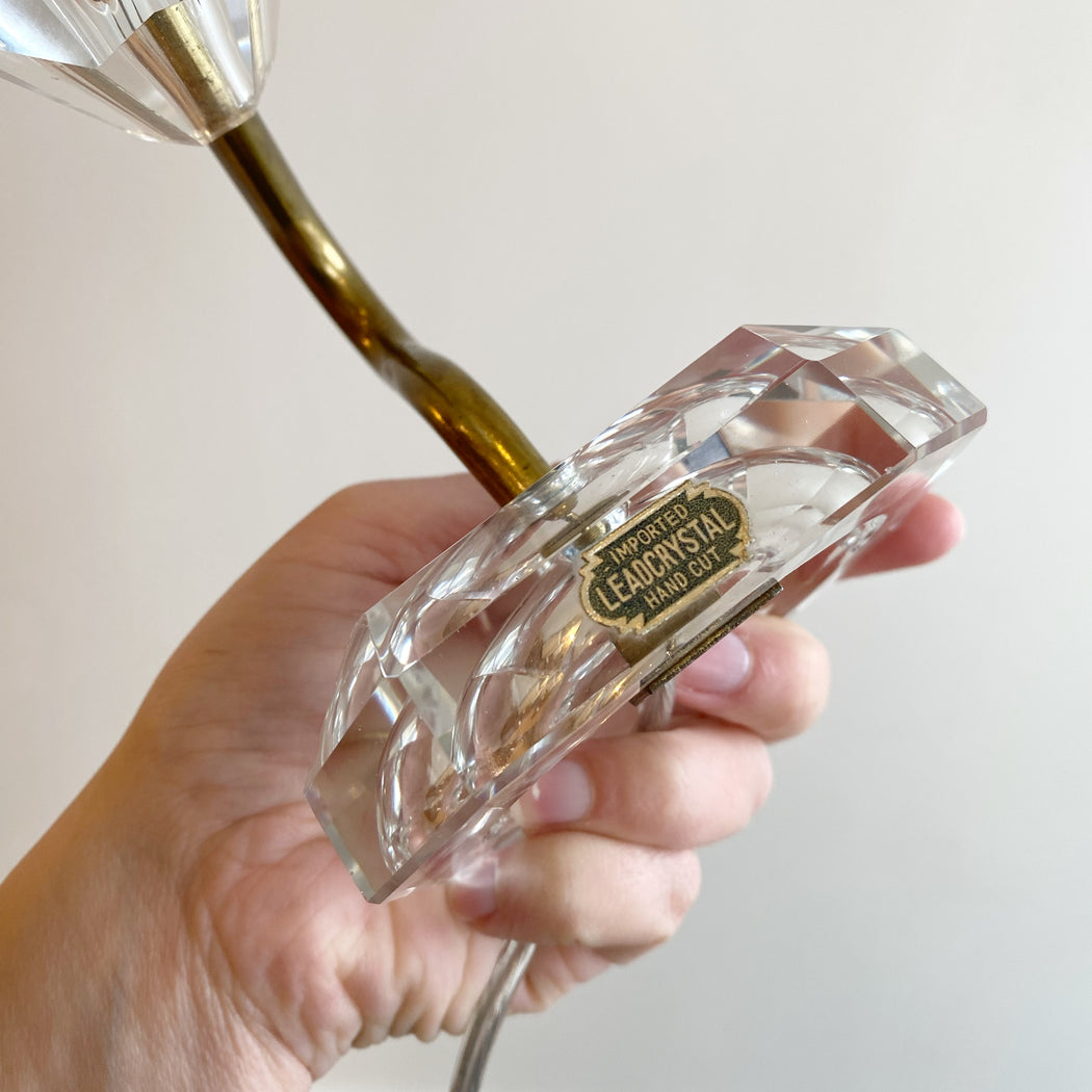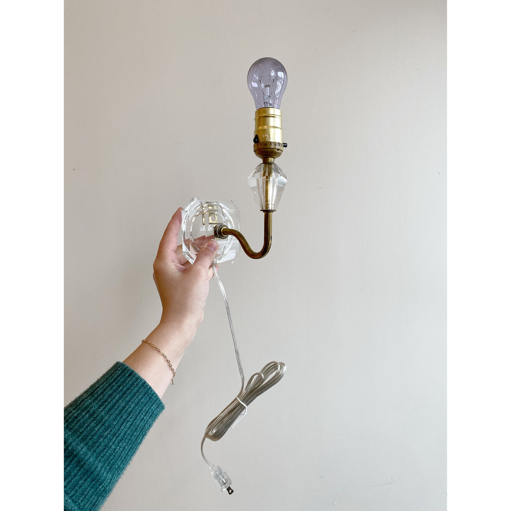 Condition: This is a vintage item with wear consistent with age/use. Re-wired with new cord, and in working order. There is patina on the brass arm/parts. The crystal is in great condition (no visible chips or cracks).